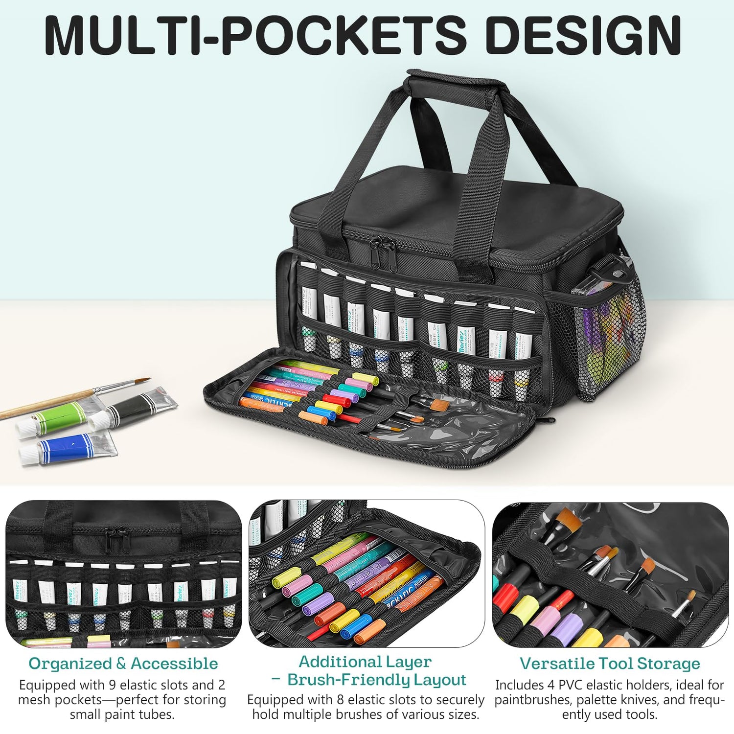 - 【EASY TO CARRY & VERSATILE】 Designed for artists on the go, the bag features wrapped handles and a padded detachable shoulder strap for comfortable carrying. Perfect for use as a marker organizer, acrylic paint storage, or a travel organizer bag — bringing style, convenience, and efficiency wherever you go.