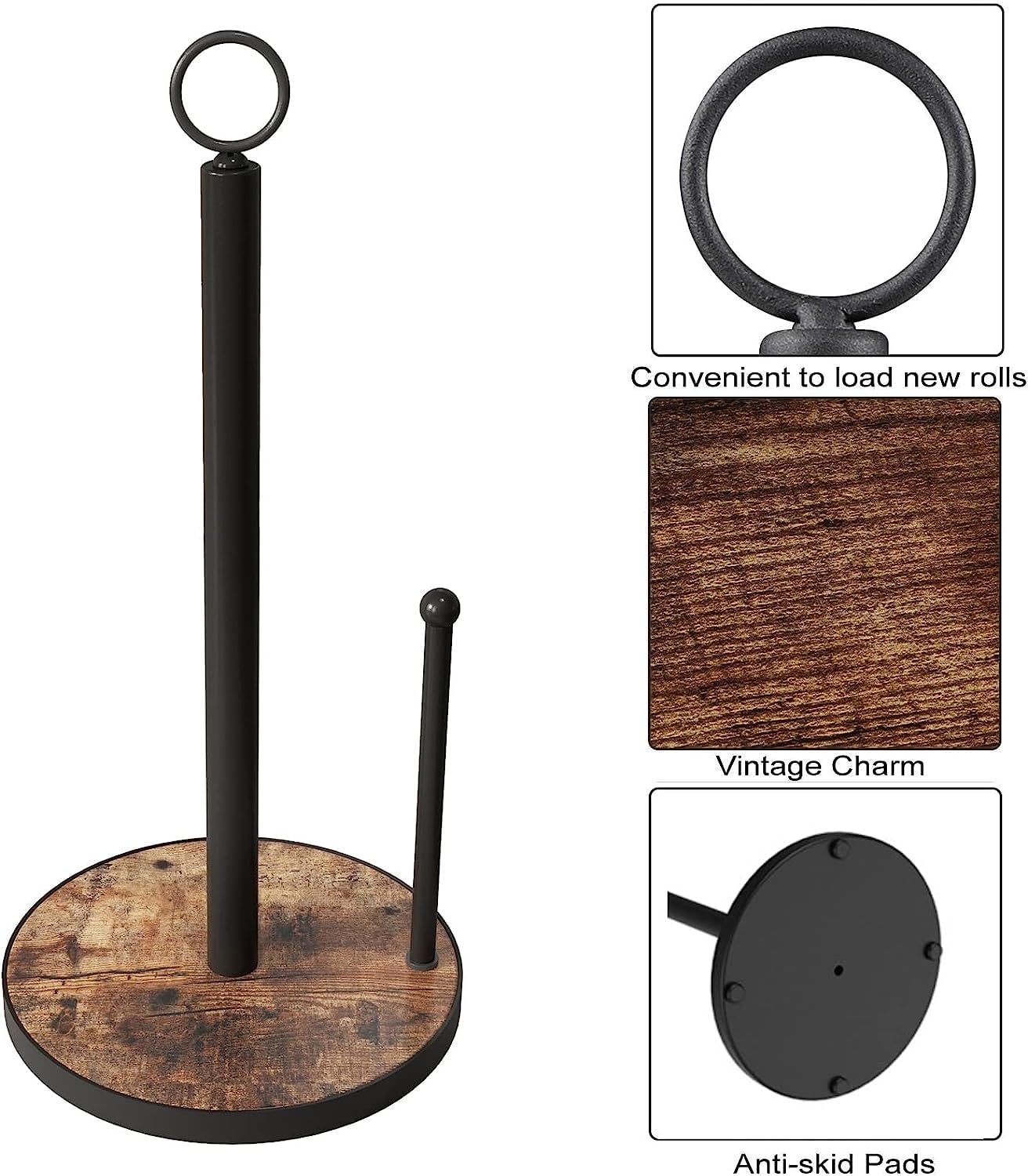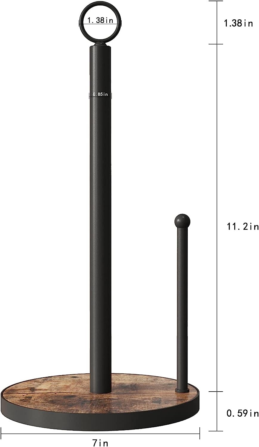 - Weighted Wooden Base - Ultra-stability of the paper towel holder stand is guaranteed thanks to its heavy-duty rustic wood base, which prevents it from tipping over whenever tearing off a sheet of paper towel.