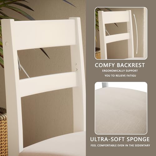 Orweiin 5-Piece Solid Wood Indoor Modern Rectangular Dining Table Set for 4,Table and Chairs 4 Set with Soft Cushions for Kitchen,Bar,Living Room,Breakfast Nook,White
