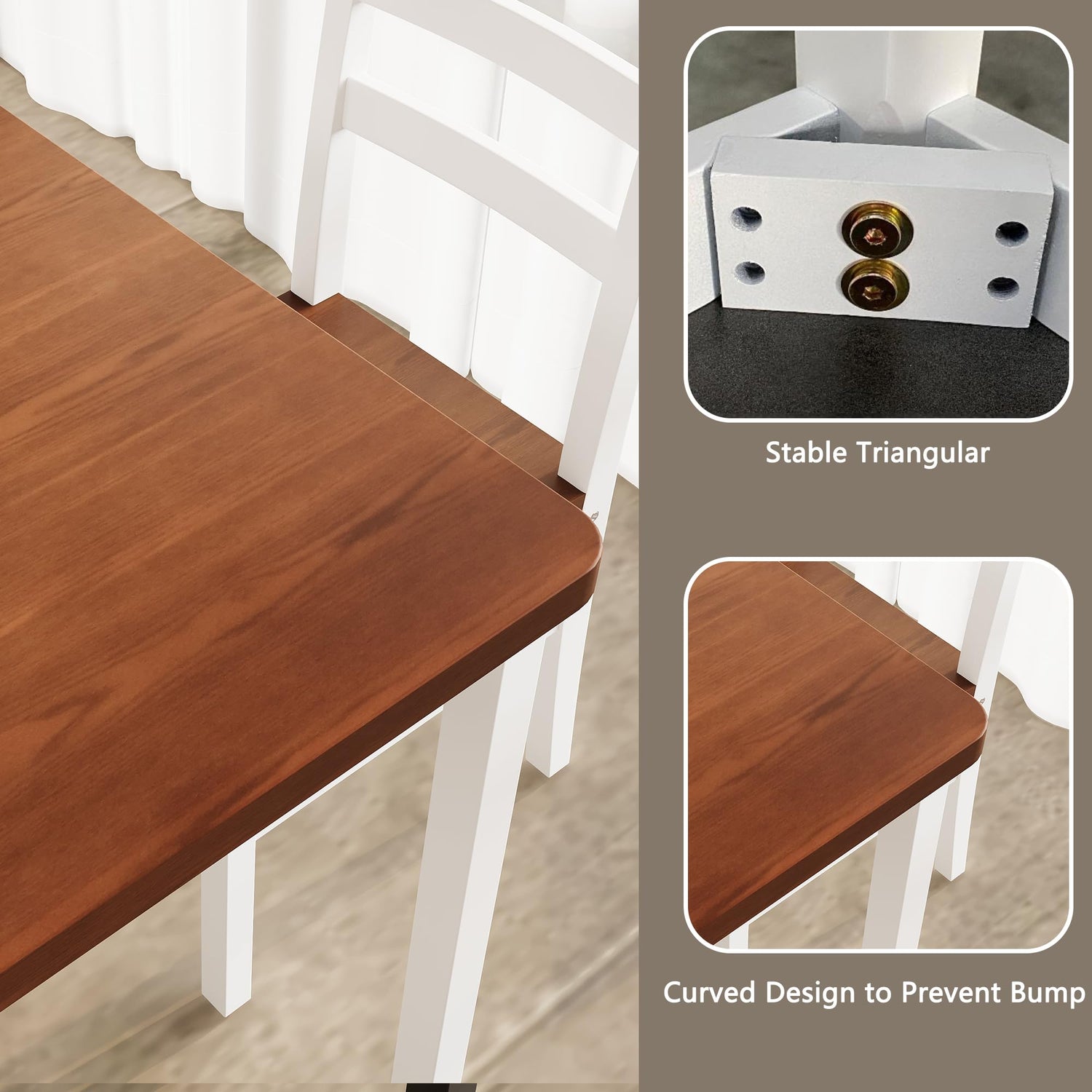 Orweiin Solid Wood Dining Table Set for 4, Farmhouse Rectangular Table and 4 Chairs Set for Kitchen, Living Room, Dining Room, Breakfast Nook, Natural+White