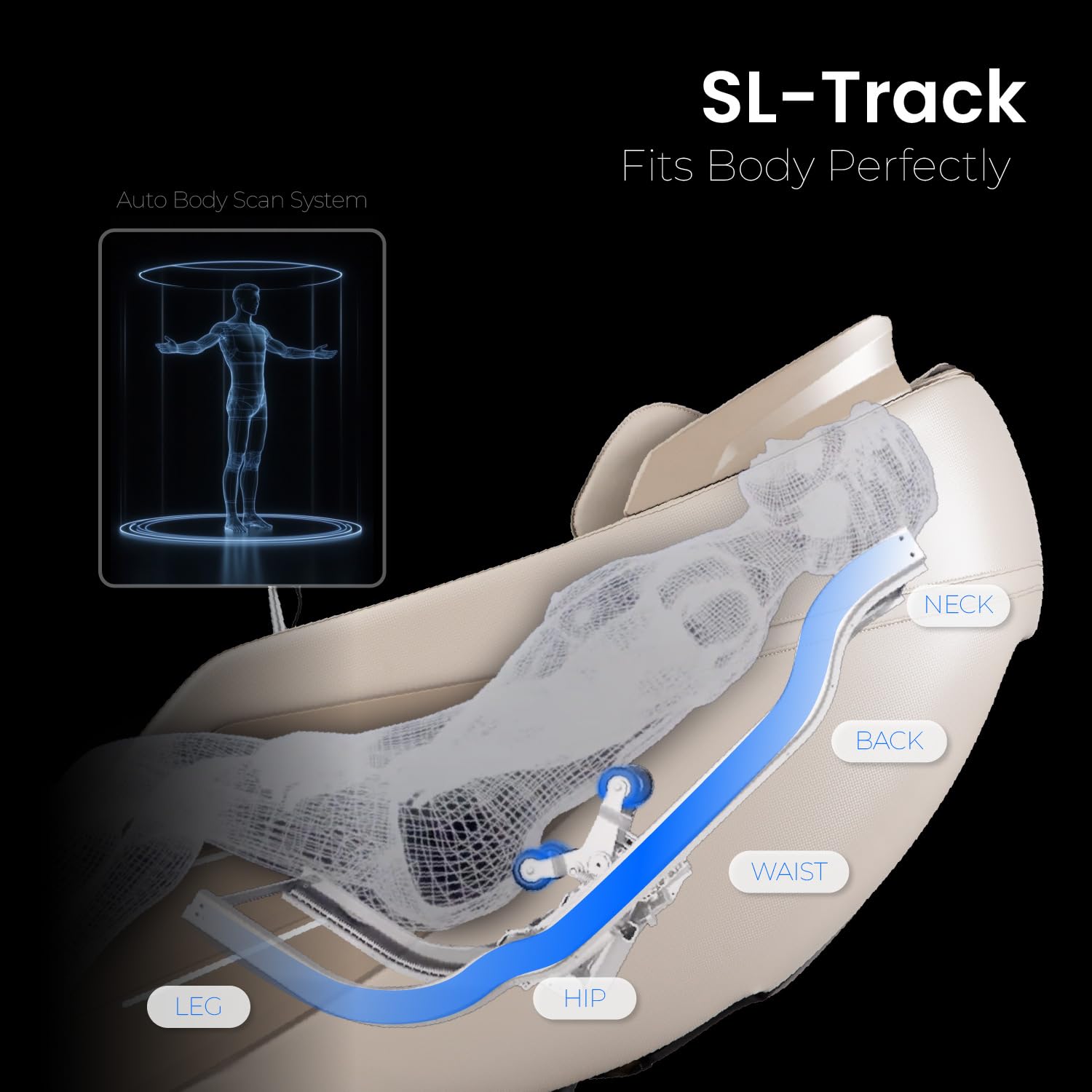 - SL-STYLE TRACK AND LUMBAR HEATING THERAPY: The SL-style track follows the natural curvature of your spine, delivering consistent support and a seamless massage experience from your neck down to your thighs. Enhance your massage with lumbar heating therapy, which provides gentle, soothing heat to the lower back, loosening tight muscles, relieving pain, and promoting deeper relaxation.