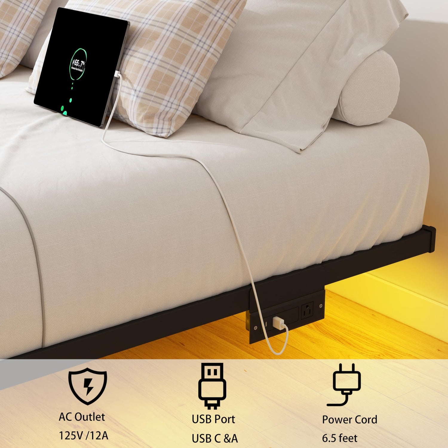 - 【Modern Floating Bed Frame】The metal queen bed frame features an innovative hidden bed leg design, with the nearest bed leg 13 inches from the tail frame, standing normally at a distance, and the bed frame is suspended in the air, giving you a sense of modern technology.