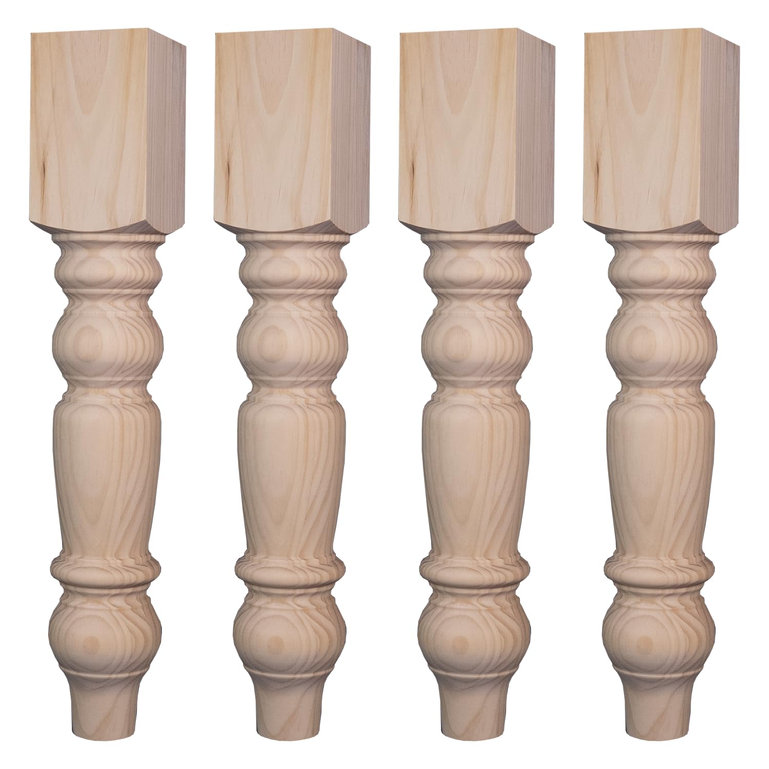 Osborne Husky Farm Dining Table Leg Made from Unfinished Pine Wood (Set of Four), Durable Turned Legs are Sanded and Ready to be Stained, Replacement Table Legs for Dining Room Table or Desk