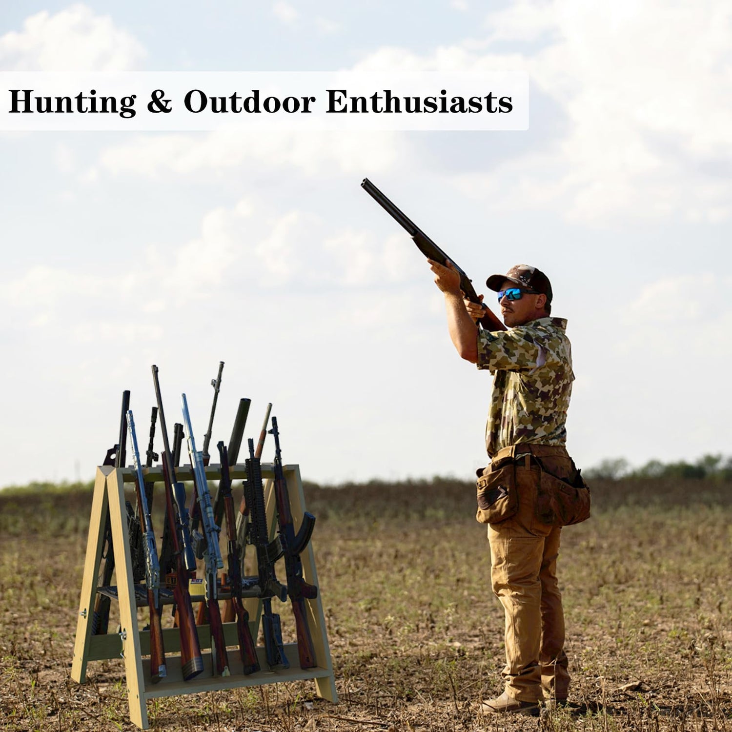 OSIEWEN Gun Rack,Wooden Portable Gun Racks Stand,12 Slot Indoor Outdoor Folding Rifle Rack Holder Use with Pistol Storage