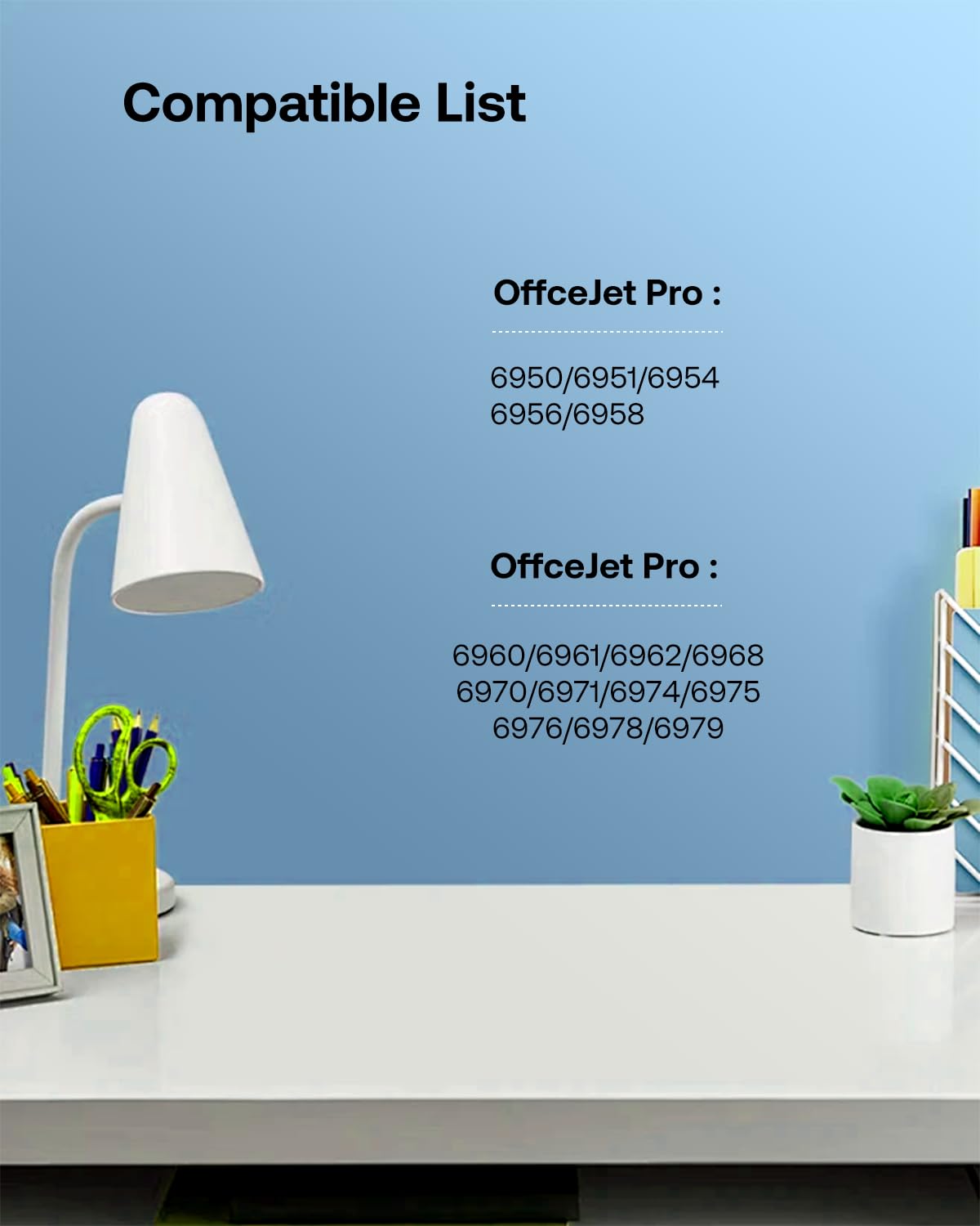 - Compatible With: OfficeJet Pro 6950, 6951, 6954, 6956, 6958, OfficeJet Pro 6960, 6961, 6962, 6968, 6970, 6971, 6974, 6975, 6976, 6978, 6979.