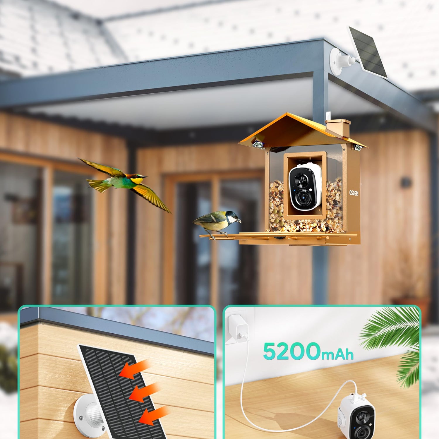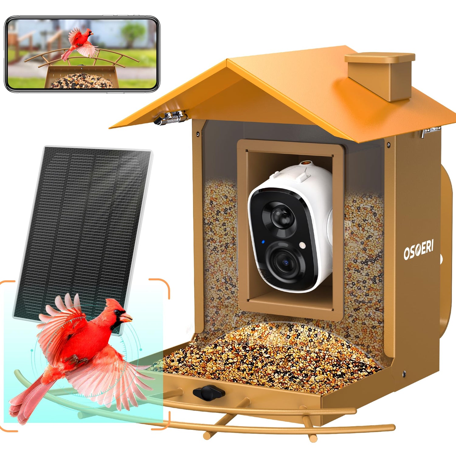Osoeri Bird Feeder with Camera, Smart Bird Feeder Camera with 1080P HD AI Identify, Metal Bird Feeder Auto Capture Bird Videos & Motion Detection, Ideal Gift for Bird Lovers