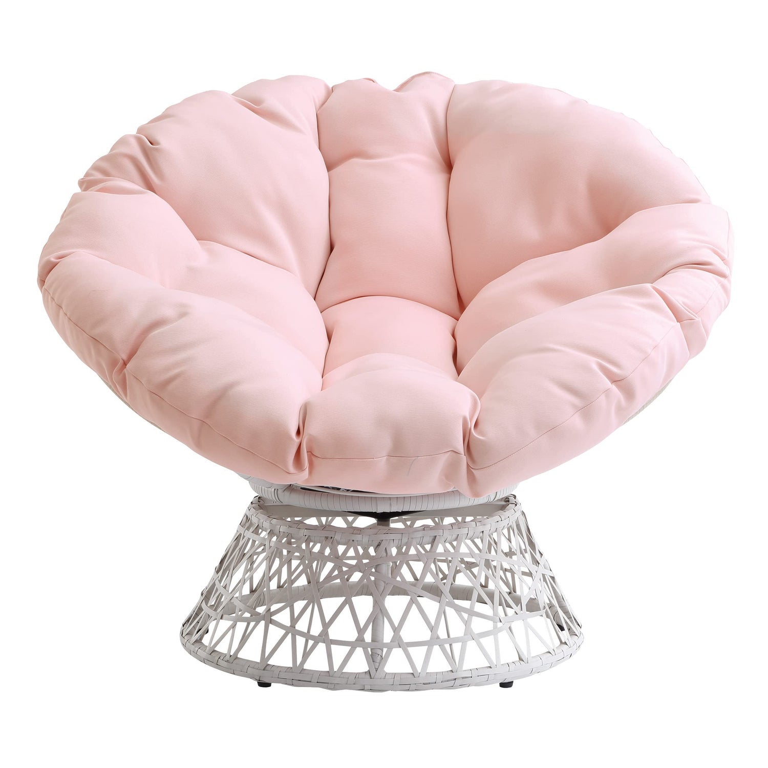 Details: Create a laid back vibe in your home with our twist on the classic papasan chair design. Nest into the generously large Dacron-filled cushion. Enjoy the boho styling of our durable resin wicker wrapped over a metal frame. Complete with a 360° swivel to twist and turn to your heart’s content. Tune in to a time when listening to your favorite albums and sipping on a cool, refreshing drink was your only ambition for the day. Add a bit of fun to your living room, family room or dorm with our easy, casual Papasan Chair. Available in several exciting colors and finishes. Durable, well built and just plain fun!