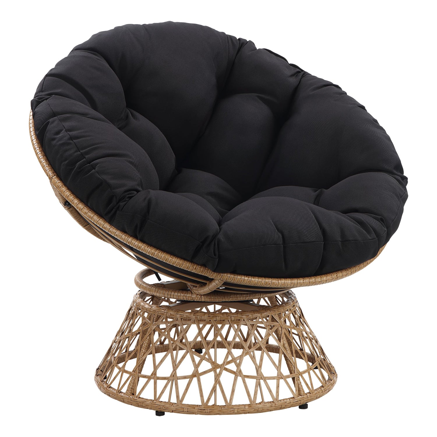 OSP Home Furnishings Wicker Papasan Chair with 360-Degree Swivel, Natural Frame with Black Cushion