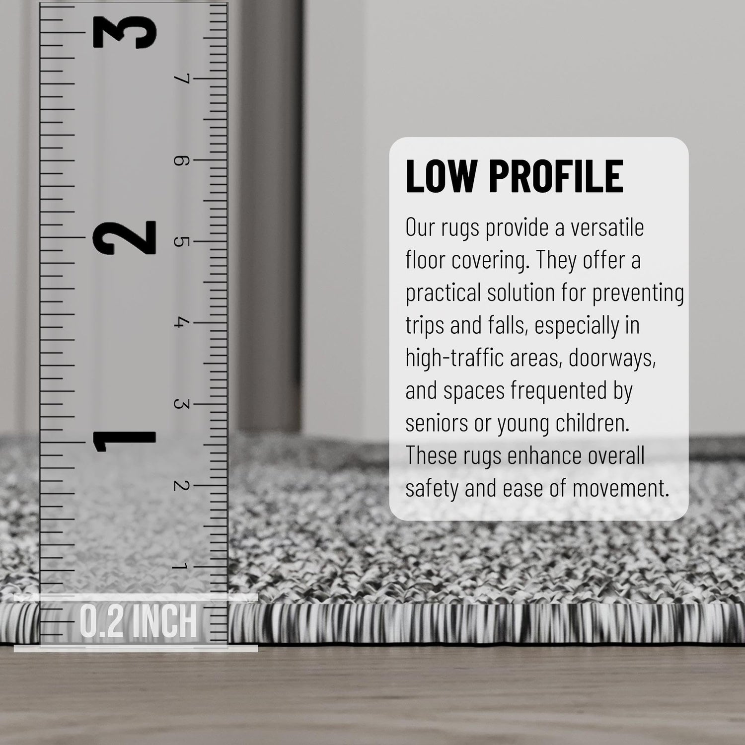 - [ULTRA THIN]: An ultra thin pile thickness of 0.2 inches offers ideal functionality that is perfect for busy areas, underneath furniture, and in entryways as it will not obstruct doorways.