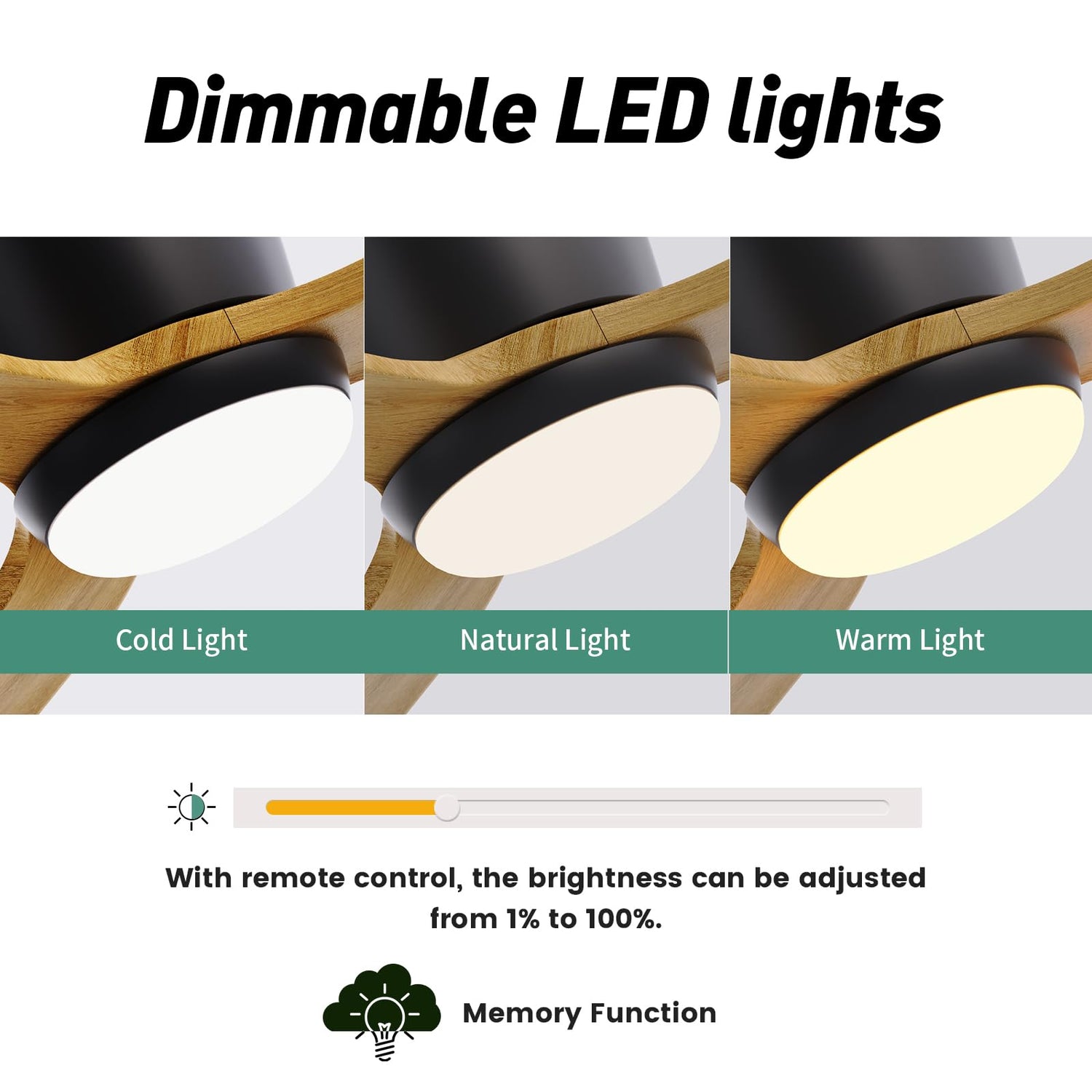 - Modern Look: This 52 inch ceiling fan with light has 3 wood blades made of high-quality wood in an elegant color and has a matte black motor as a modern décor. Suitable for living room, farmhouse, indoor&outdoor, patios, summer house, bedroom, farmhouse.
