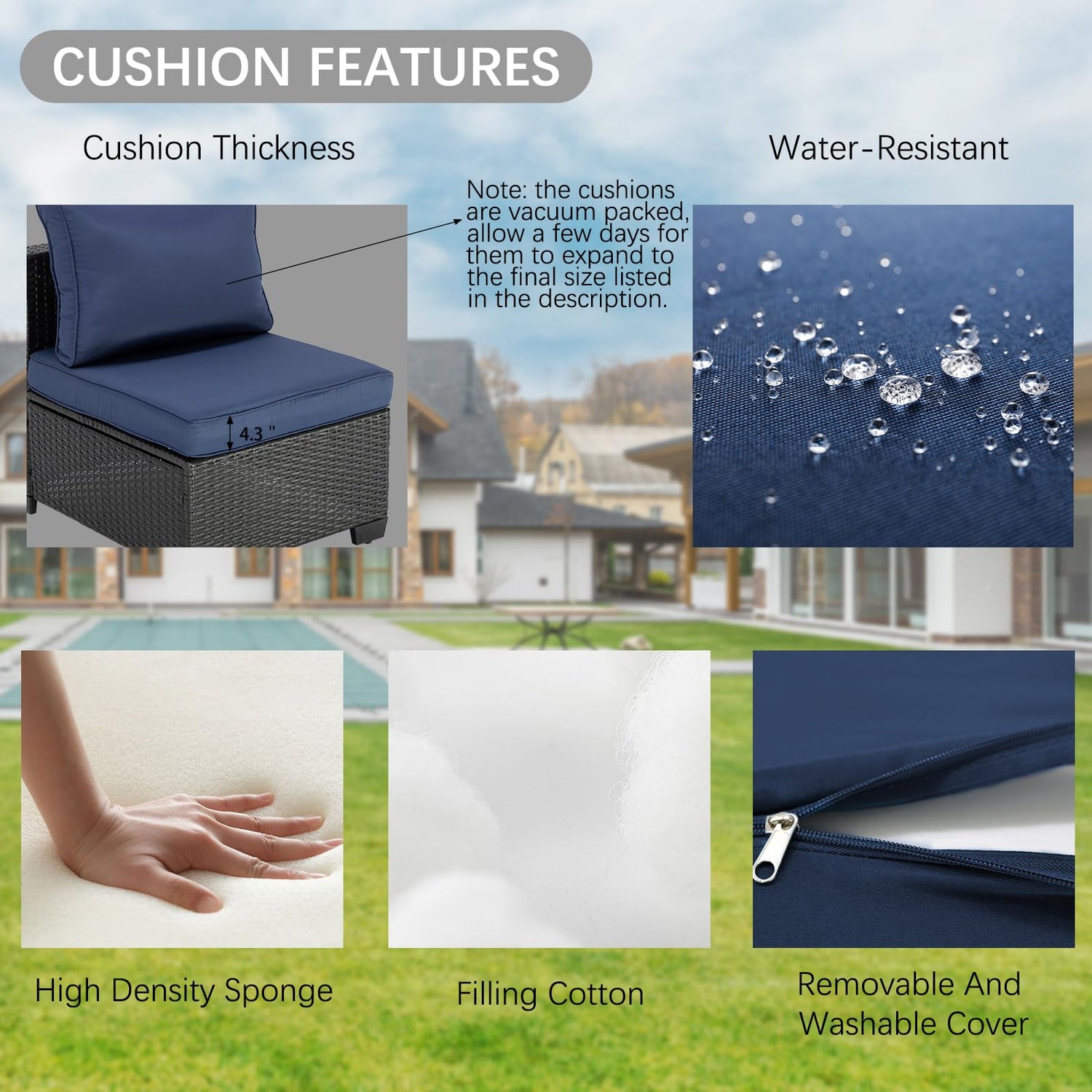 【Flexible Combination】Outdoor Sectional Sofa Set offers a modular design, that makes it possible for flexibility with numerous arrangement options. Patio Set have many configuration options based on your preference and geography. Seat clips helps to keep the sofa pieces from sliding apart.