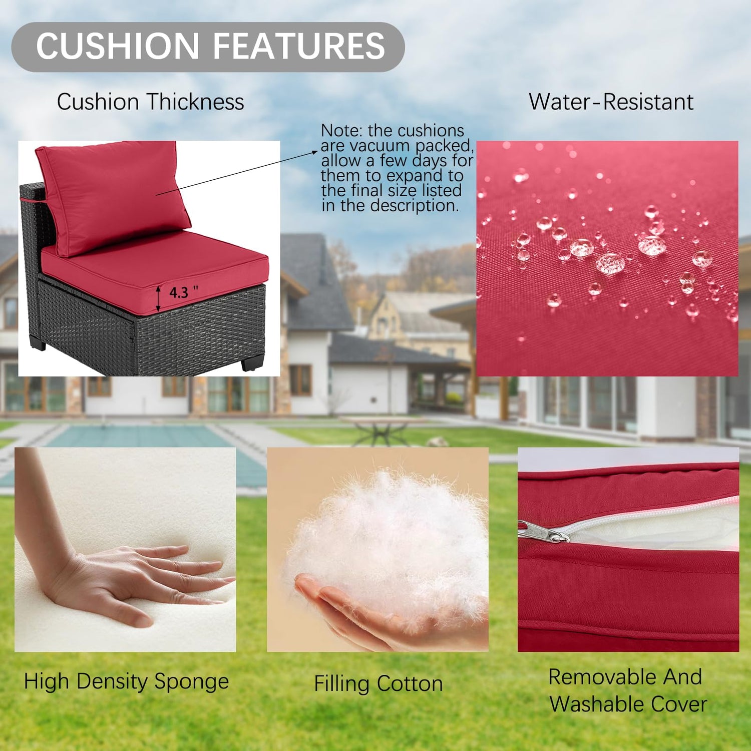【Flexible Combination】Outdoor Sectional Sofa Set offers a modular design, that makes it possible for flexibility with numerous arrangement options. Patio Set have many configuration options based on your preference and geography. Seat clips helps to keep the sofa pieces from sliding apart.
