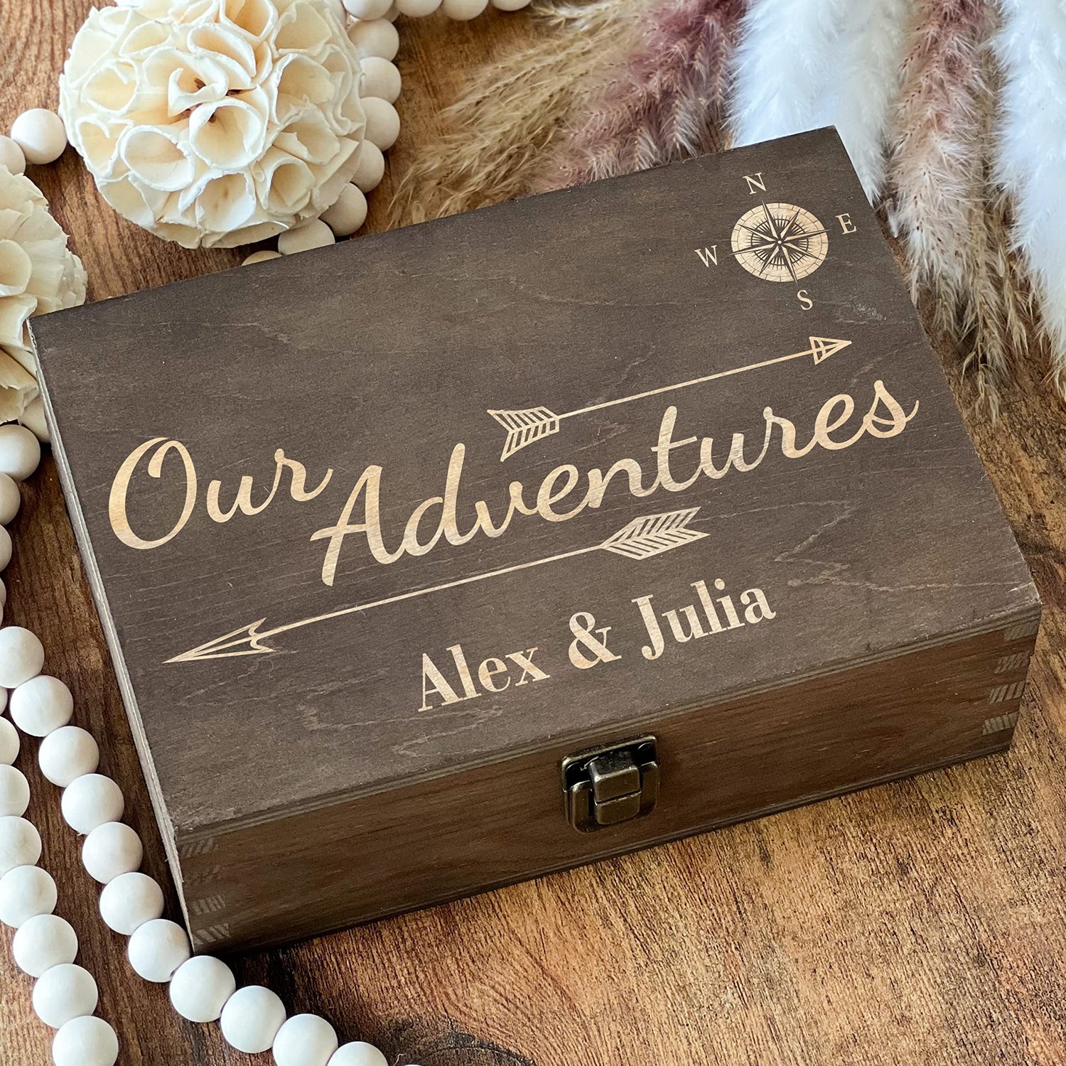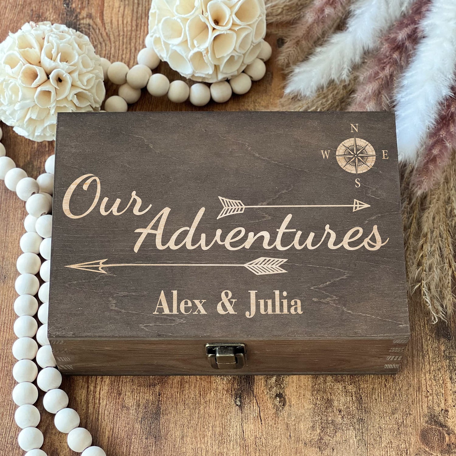 Our Adventures Box, 8.5 in x 8 in x 2.5 in, Wooden Box, Keepsake Box, Memory Box, Gift box, 5th Anniversary Gift, Unique Gift Ideas, Travel, Wooden
