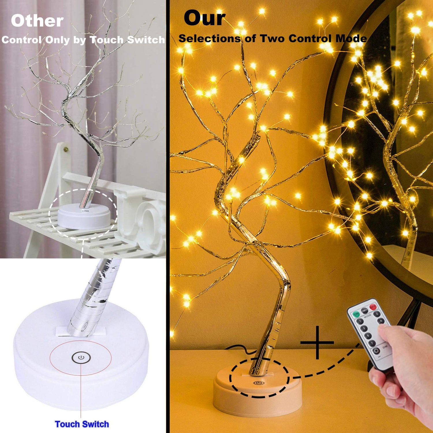 OURBAOFU 20” 108LED Fairy Sparkly Tree Lamp with Remote Control, USB&3AA Powered 8 Modes, DIY Bonsai Artificial Tree Lights, Fairy Spirit Tree Light for Bedrooms Desktop Christmas (Warm White)