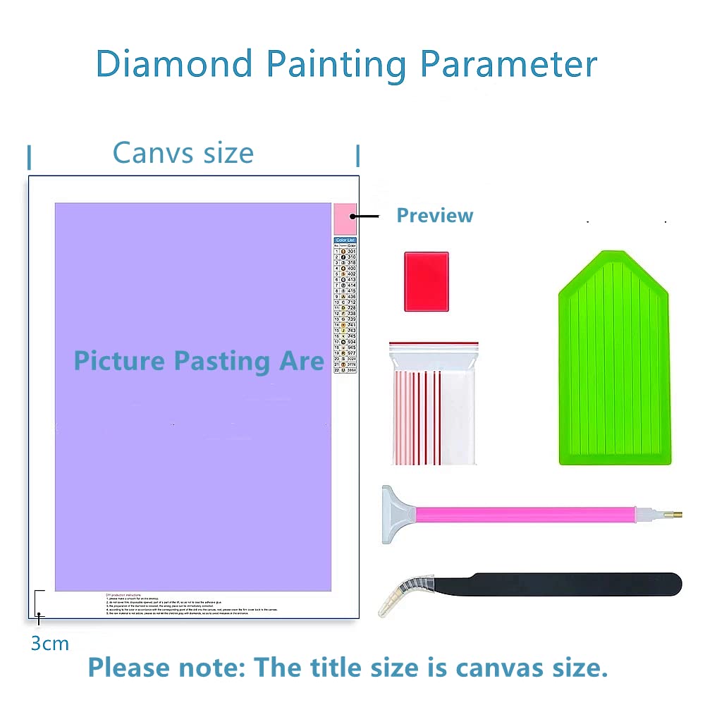 - 【High Definition Canvas】: Our Diamond Art Painting is high clear waterproof painting canvas, symbols and letters are very easy to see and read, even for beginners. The canvas itself has a sticky background and plastic film to keep the picture sticky and then the beads will hold.