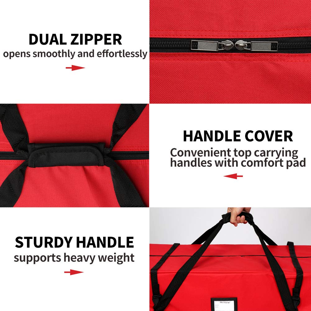 - ◆EASY TO CARRY - Equipped with 4 durable stitch-reinforced handles (top and side) for comfortable transporting the Christmas Storage Bag when fully loaded. With full-length dual zipper and a large opening for easy loading and unloading of tree