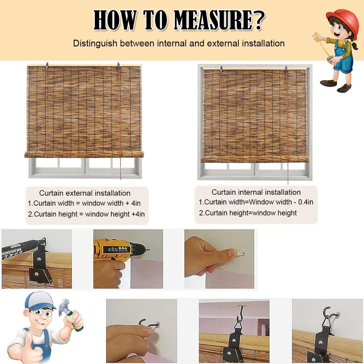 - Easy Installation: Bamboo Roll Up Window blinds are designed for easy installation and can be installed in just a few minutes without specialised tools or complicated steps. Equipped with a roller mechanism and a full set of installation accessories, you can easily adjust the height according to your needs, and quickly achieve the perfect window decoration, saving time and effort
