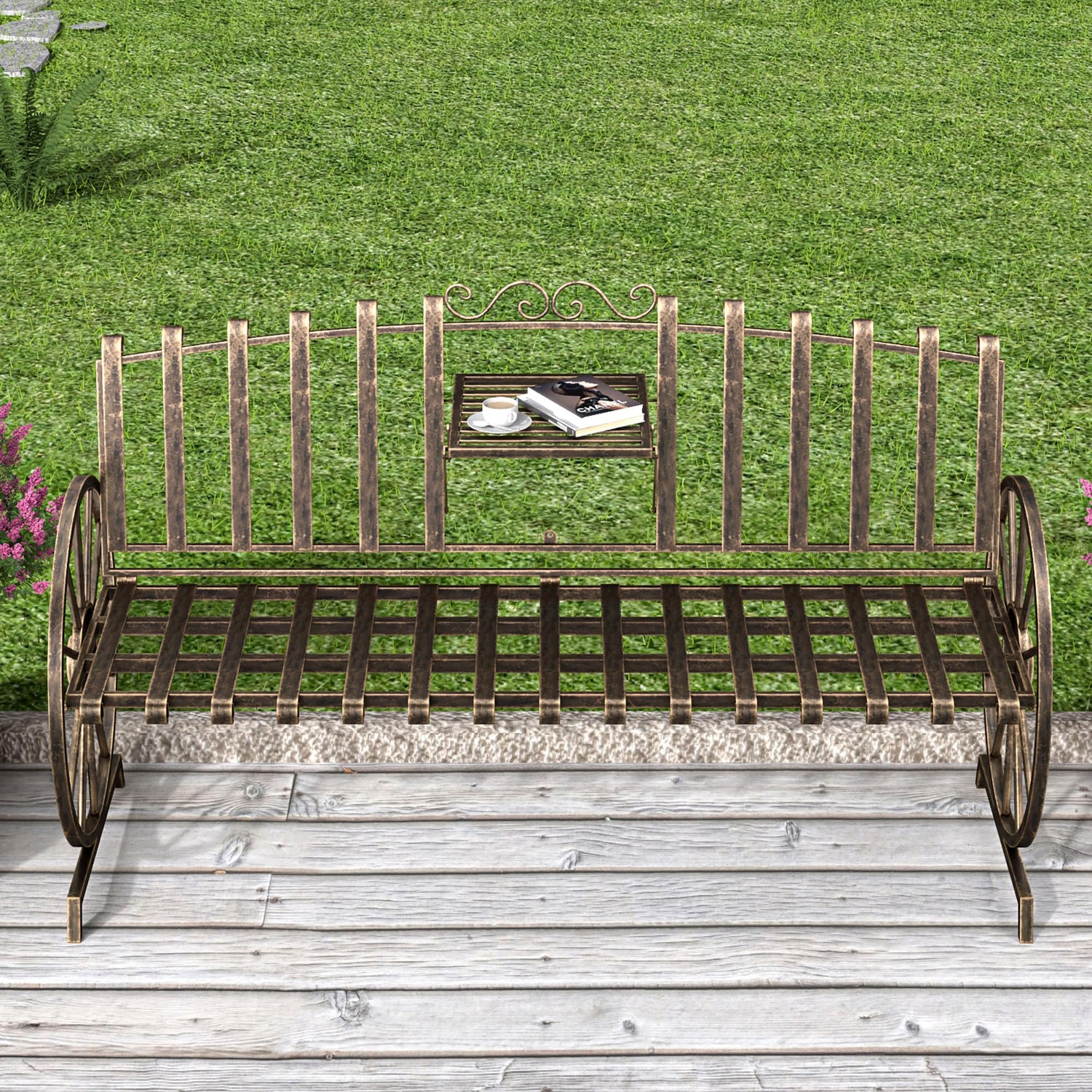 Outdoor Bench Patio Outdoor Garden Bench with Built-in Table, Wagon Wheel Arms, 3 People Outdoor Bench Garden Bench Front Porch Furniture Patio Lawn Yard Park (Bronze)