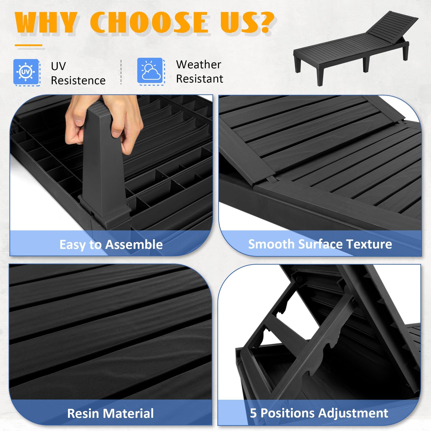 - 🌦️ Weather-Resistant & Low Maintenance Tired of high-maintenance furniture? These outdoor lounge chairs are made from UV-protected, fade-resistant resin with a modern wood grain texture. Perfect for year-round use, these patio lounge chairs withstand everything from harsh sun to heavy rain, keeping your outdoor space stylish and stress-free.