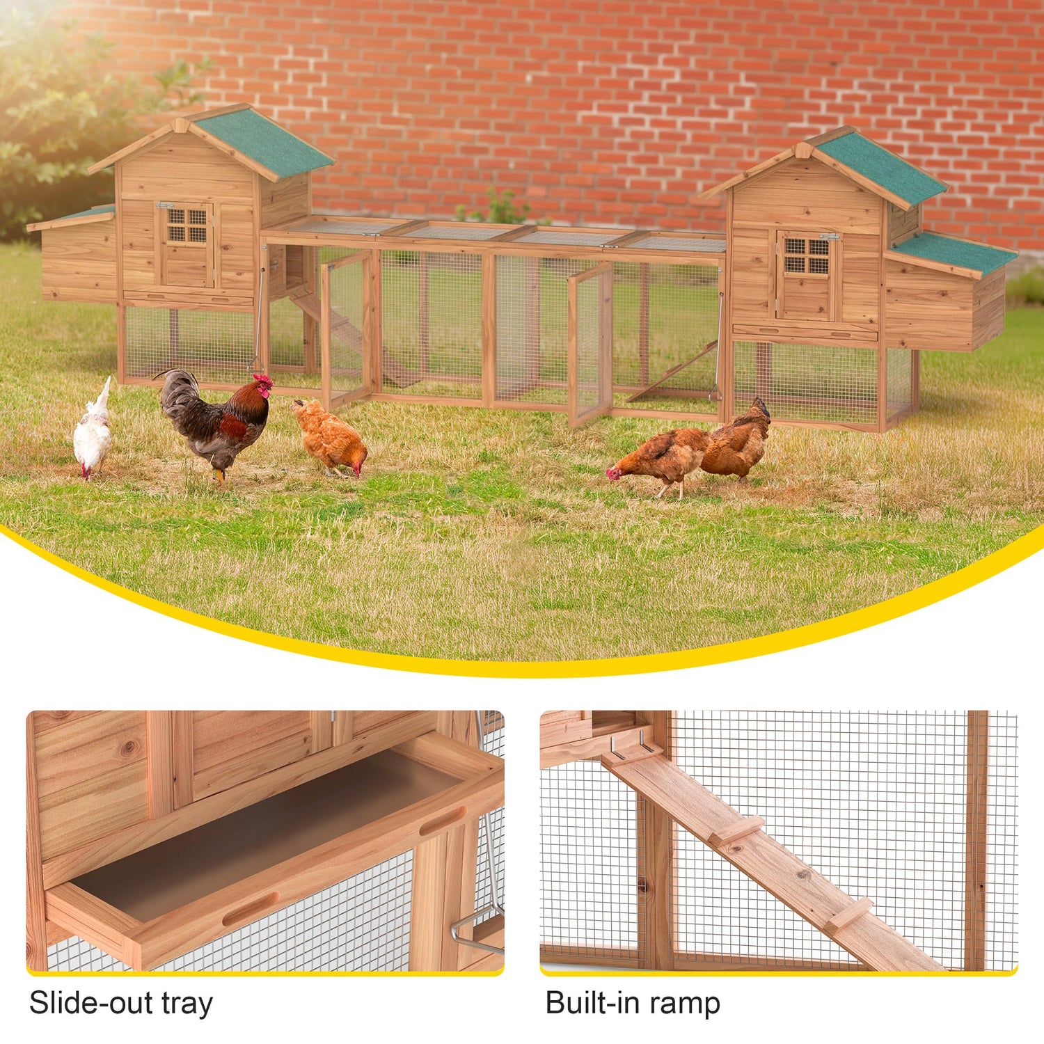 - The wooden chicken coop is made of fir wood and painted with security waterproof non-toxic paint.