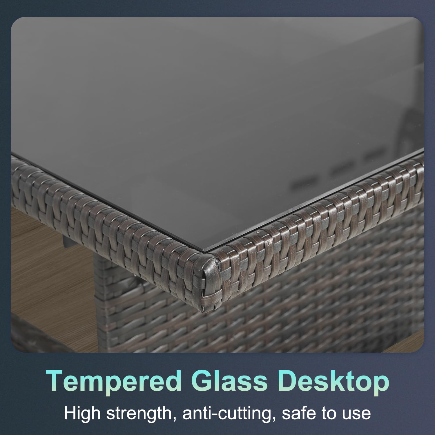 - ♫〖Widely Use〗: The table in the patio dining set is made of high-quality tempered glass for drinks, food and any beautiful decorations. Designed for convenience, these lightweight pieces can be easily rearranged to fit your patio, balcony, or backyard perfectly. Whether you're hosting a gathering or creating a cozy retreat, you can customize the layout to suit your style and needs effortlessly.