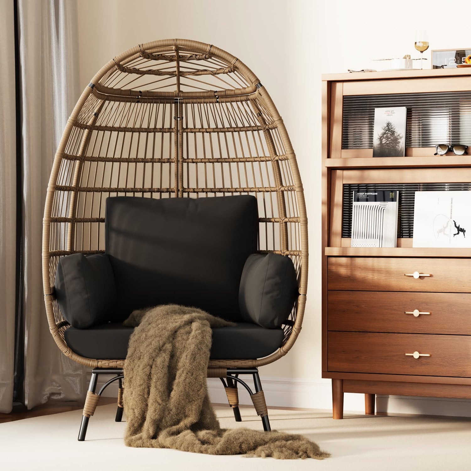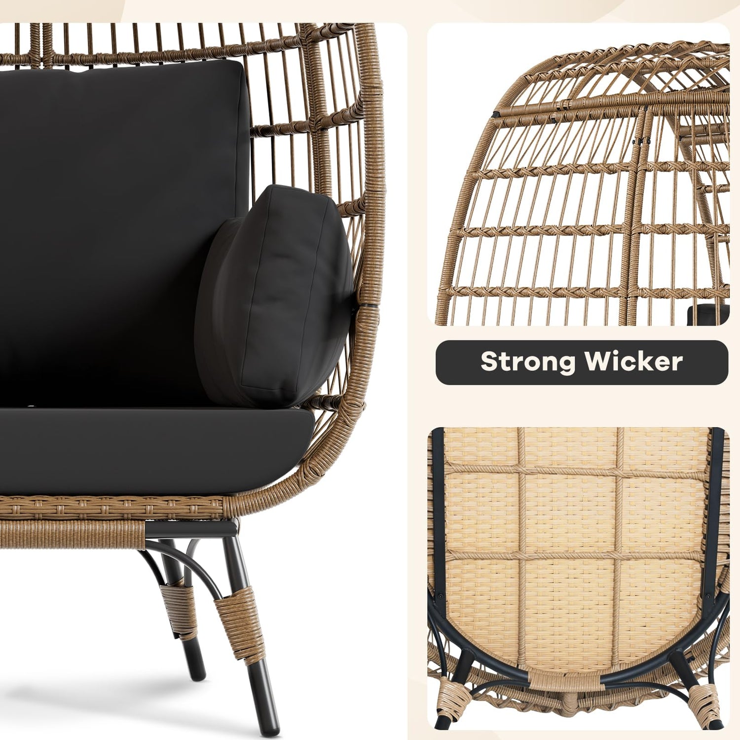 Outdoor Egg Chair, Oversized Patio Wicker Basket Chair for Balcony, Patio, Living Room, Lounge Chairs for Outside with Thick Cushions, 350LBs Capacity Egg Chair Indoor Outdoor Furniture, Black