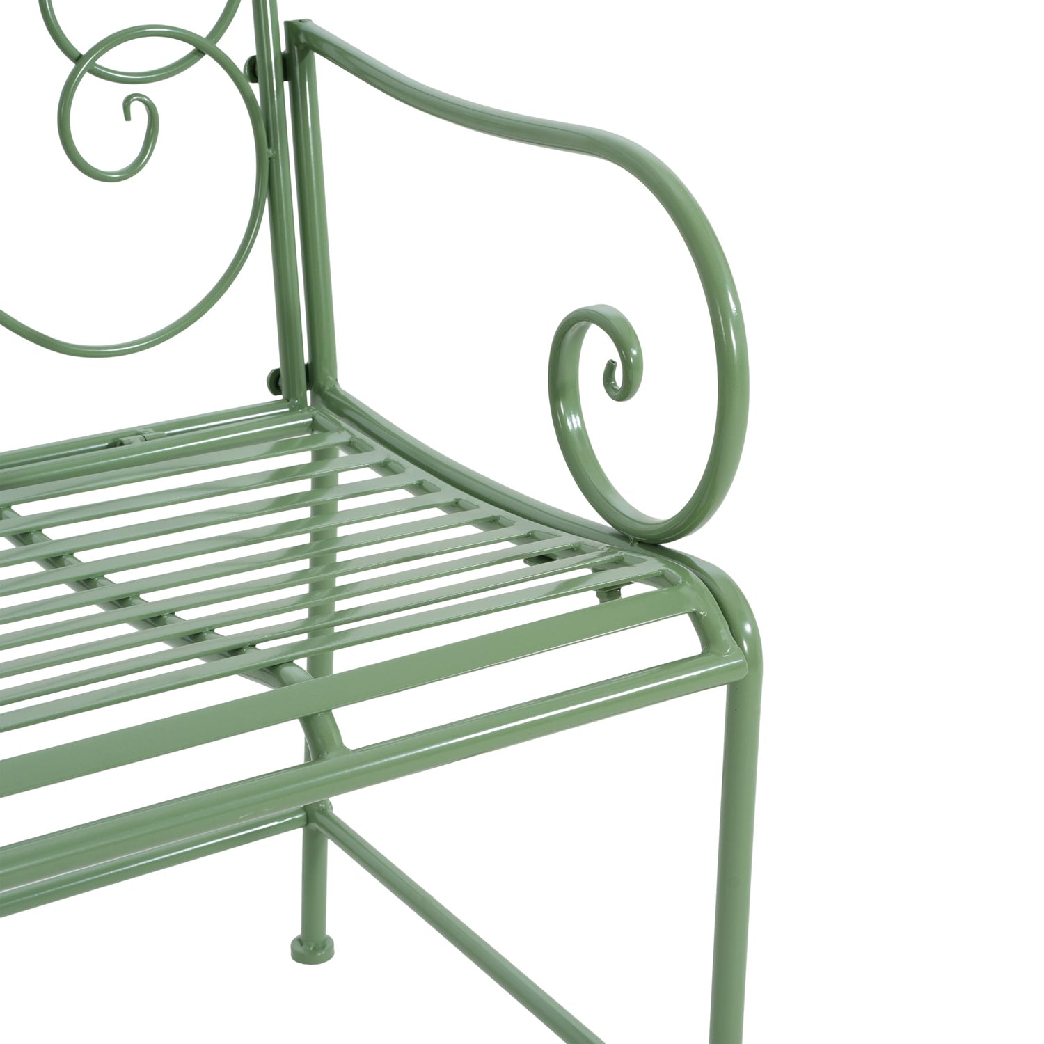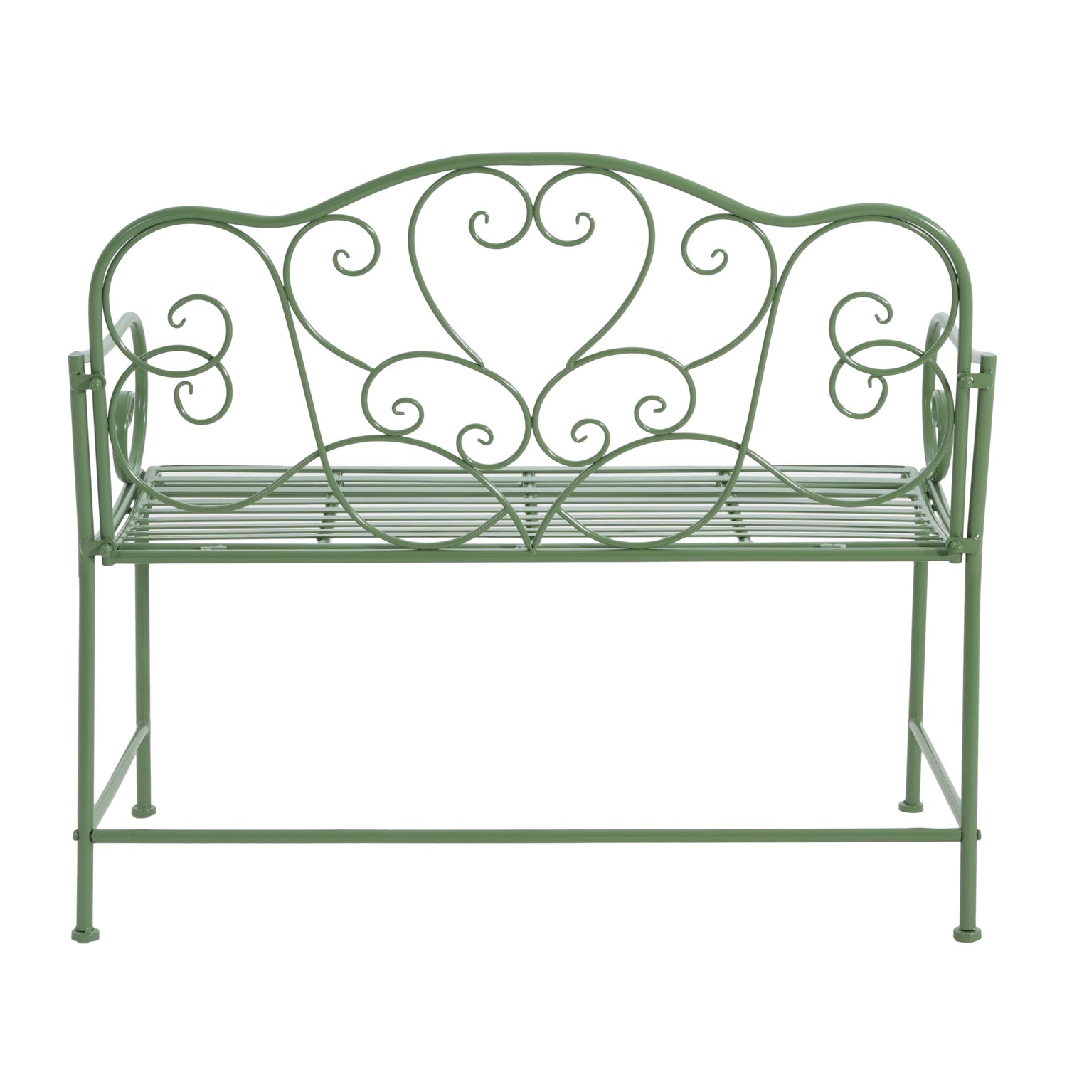 Outdoor Garden Bench, Sturdy Iron 2-Seater with Decorative Backrest, Weather-Resistant Metal Loveseat for Patio, Porch, Lawn, Romantic Green Finish, Ventilated Seat, Easy Maintenance, Matte Green