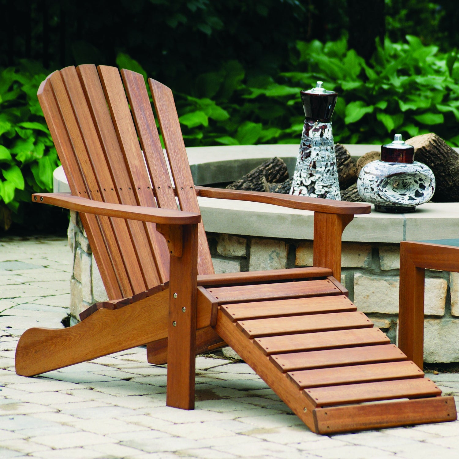 Outdoor Interiors CD3111 Eucalyptus Adirondack Chair and Built In Ottoman