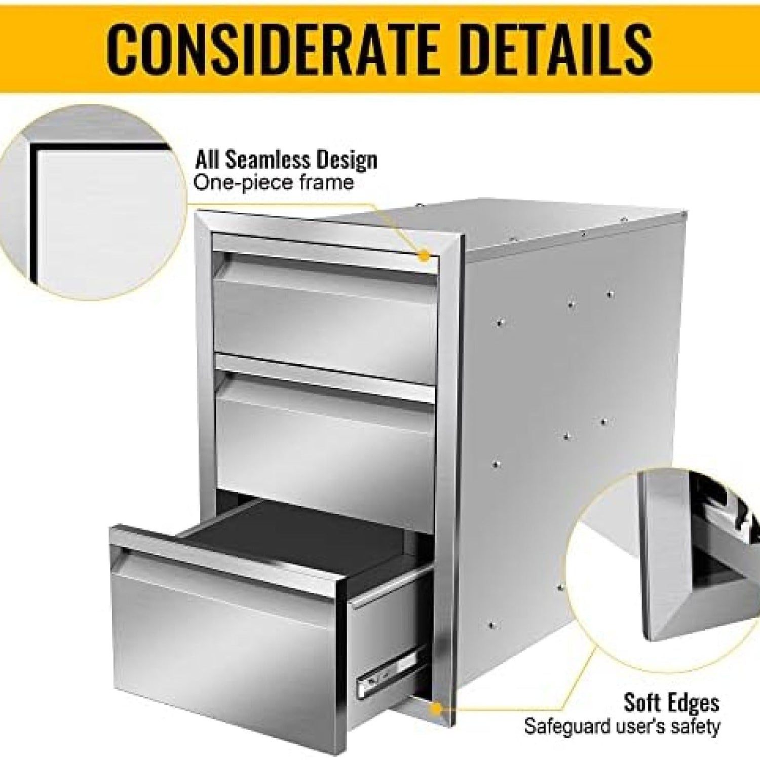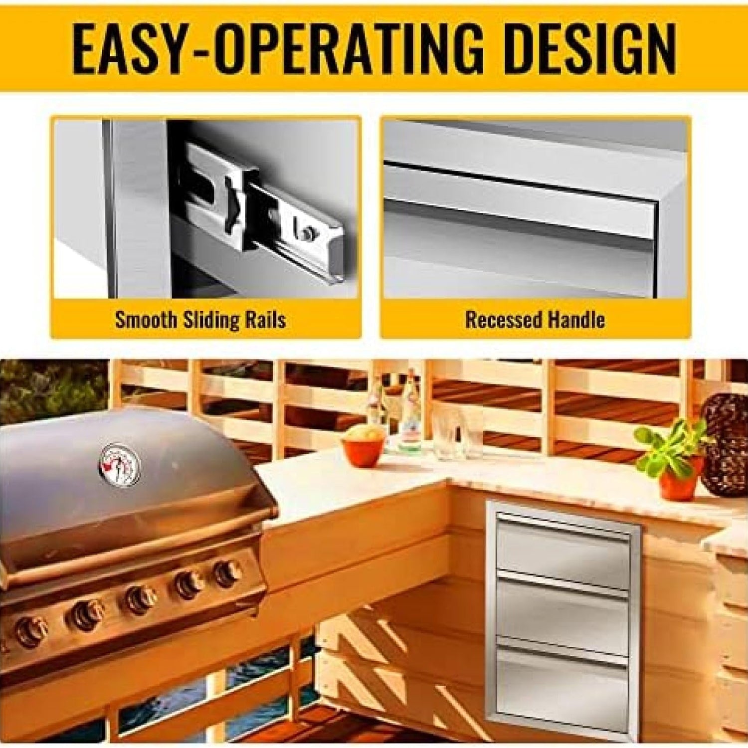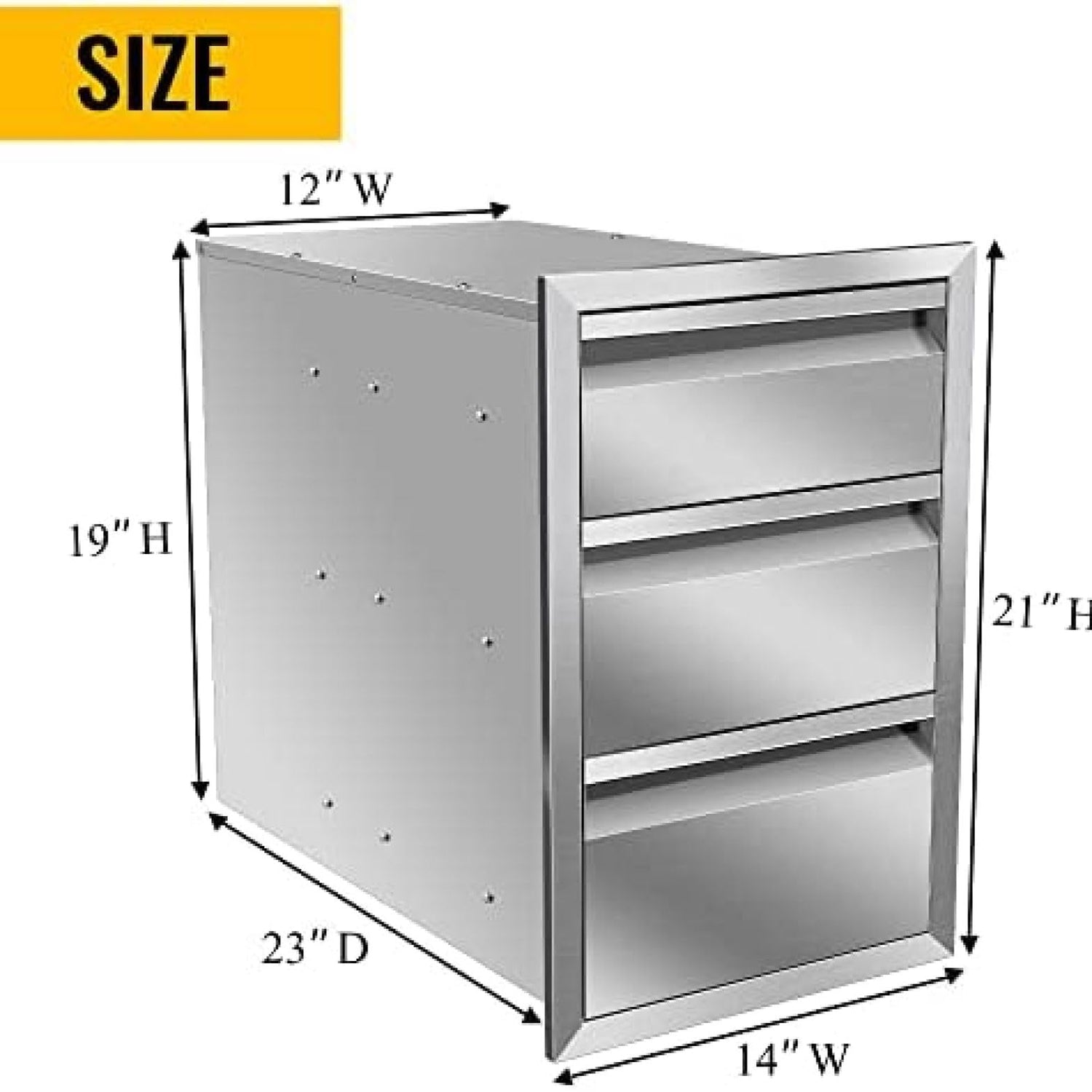Outdoor Kitchen Drawer Stainless Steel BBQ Triple Drawer Flush Mount for Outdoor Kitchen Island,-14W X 21H X 23D Inch