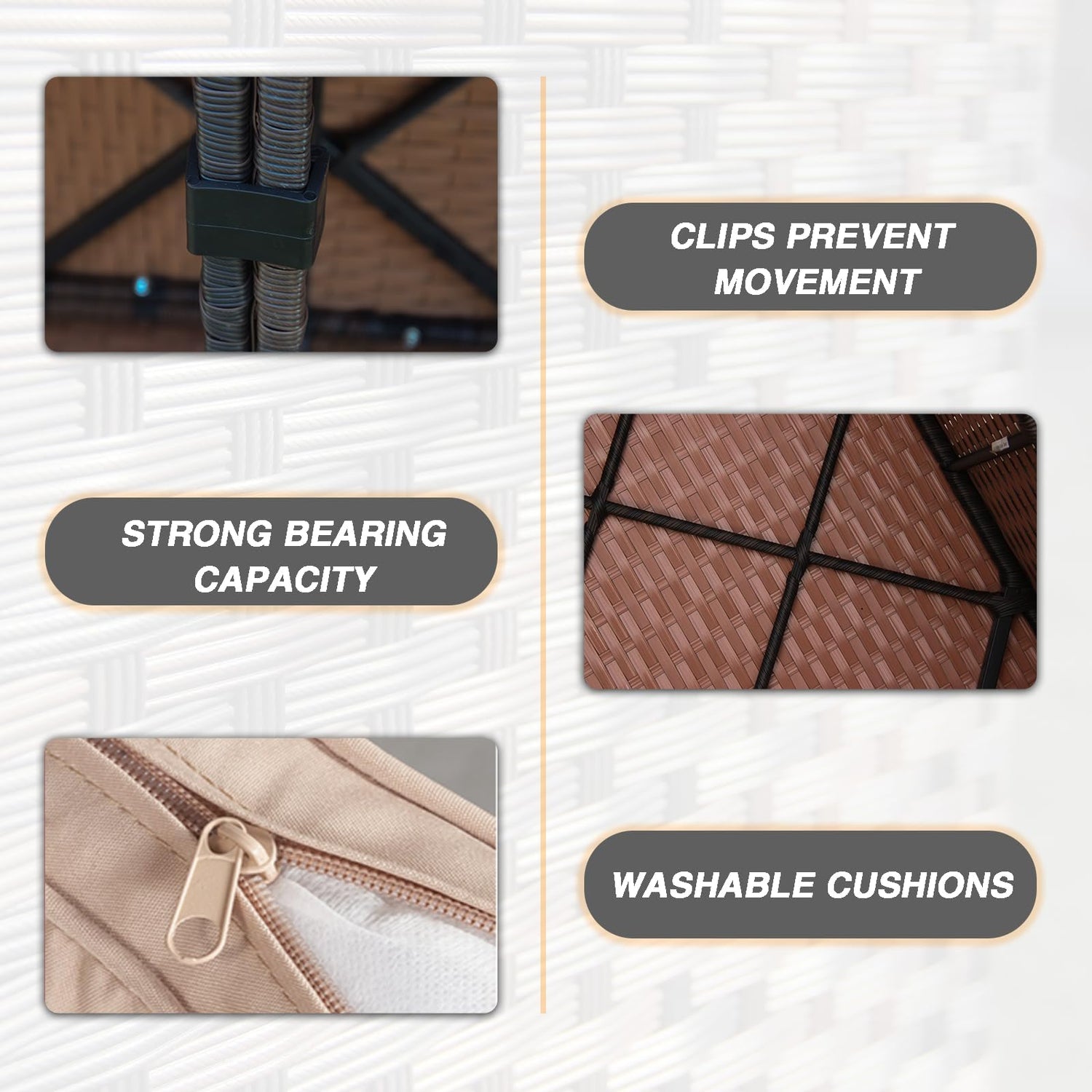- 【Assembly & After-sales】: The outdoor patio set with clear instructions and all necessary hardware for speedy, smooth assembly, also Assembly Demo Video is available. Any problems, let us know without hesitation, and our team will respond to you promptly and the powerful solutions, including replacement or return & refund.
