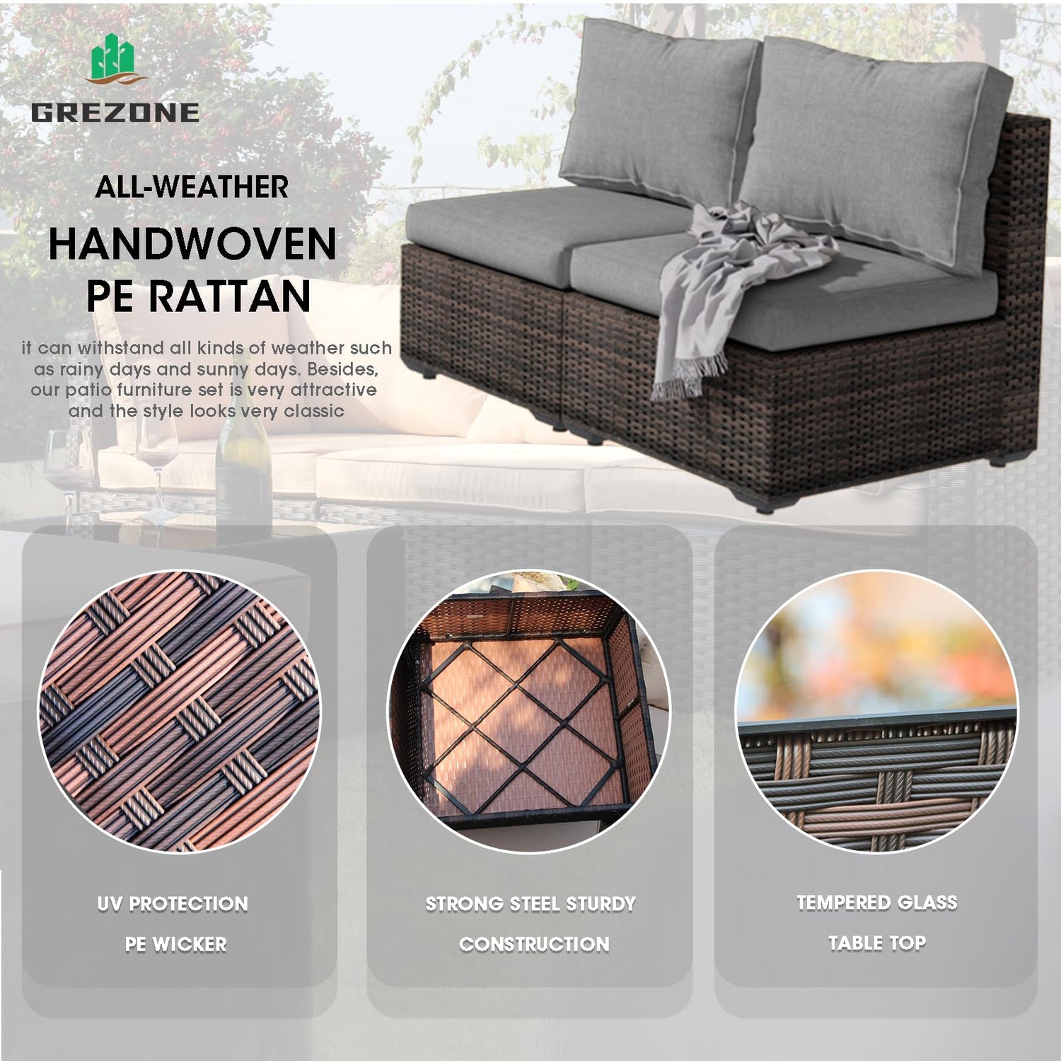 - 【Sturdy & Durable】This patio furniture set sets with a solid frame, and high-quality rattan wicker that is strong enough to withstand all weather variations, It is also durable. Tempered glass can prevent the coffee table from scratches. Breathable and thickened cushions with waterproof fabric cover Easy to clean and don't fade easily.