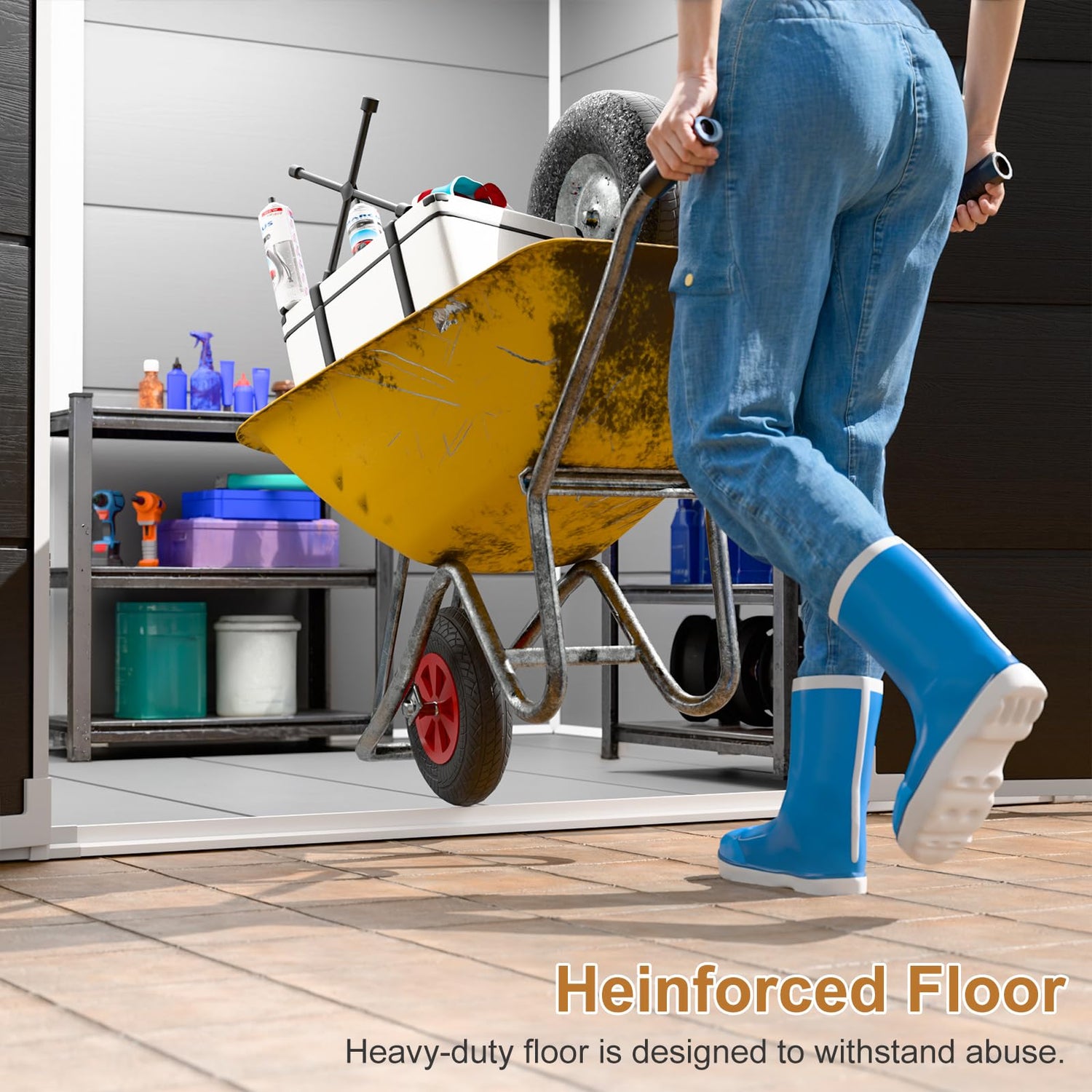 - Floor &Vents Inlcuded : The extra-wide front double doors for greater flexibility in organizing and accessing items, included shed floor,built-in ventilation prevents mold and mildew growth, enhanced safety for tools and equipment with lockable doors, Included D-Clip wall anchors to support shelves & hangers