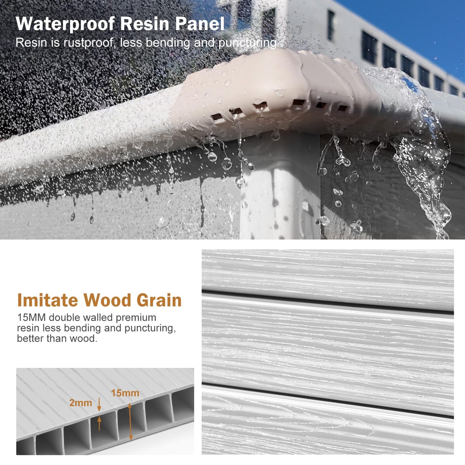 - 【PREMIUM RESIN MATERIALS SHEDS】 Our durable storage shed is crafted with 15MM premium polypropylene resin plastic, which is thicker than others in the market. Resin shed is waterproof, rustproof and UV-resistant, less bending and puncturing, worry-free for use in all weather conditions. It is a great shed house for your backyard, patio and garden