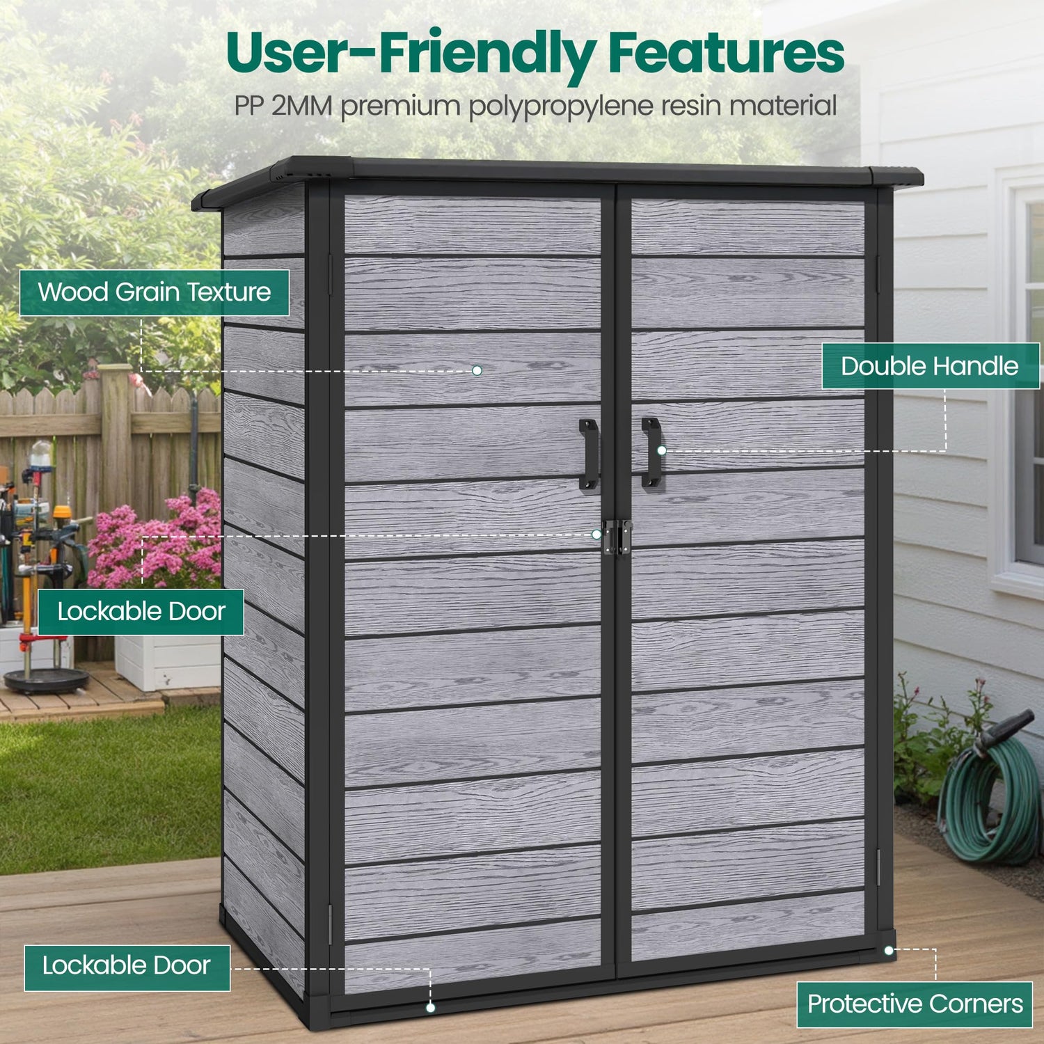 Outdoor Resin Storage Shed with Floor, Lockable Vertical Tool Shed, Weather-Resistant Garden Storage Cabinet for Backyard Patio (Dark Gray)