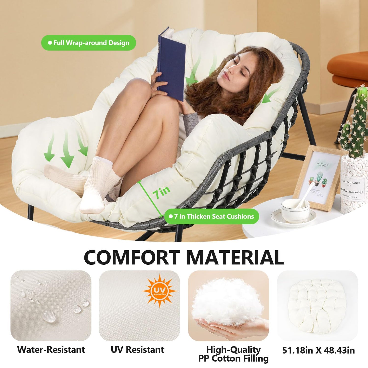 - Papasan Rocking Chair: LISRUX patio chair has an elegant egg shape that wraps you in its comfortable structure and allows you to rock back and forth up to 30°, giving you maximum comfort to rest in.