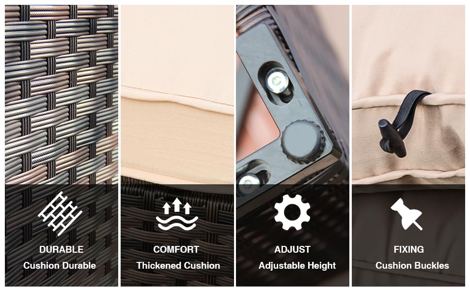 - 【Assembly & After-sales】: The outdoor patio set with clear instructions and all necessary hardware for speedy, smooth assembly, also Assembly Demo Video is available. Any problems, let us know without hesitation, and our team will respond to you promptly and the powerful solutions, including replacement or return & refund.