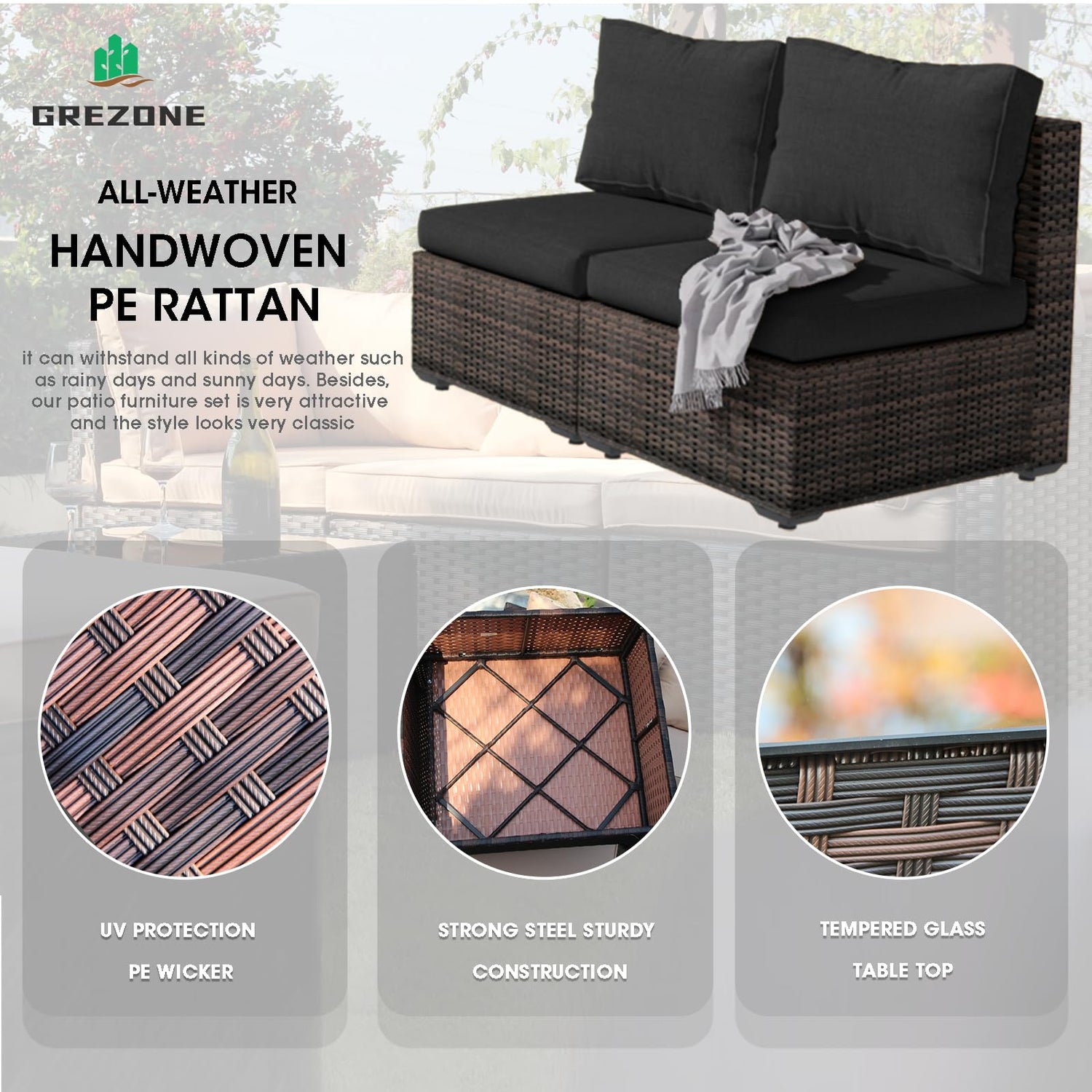 - 【Sturdy & Durable】This patio furniture set sets with a solid frame, and high-quality rattan wicker that is strong enough to withstand all weather variations, It is also durable. Tempered glass can prevent the coffee table from scratches. Breathable and thickened cushions with waterproof fabric cover Easy to clean and don't fade easily.
