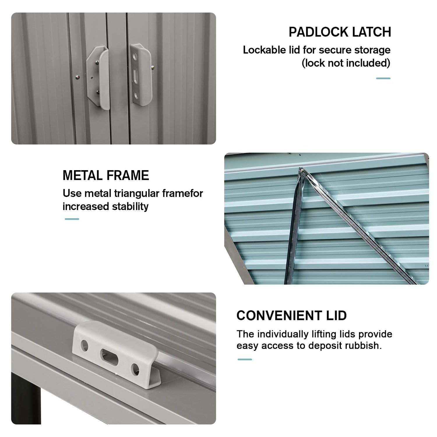 Outdoor Trash Can Storage,Metal Storage Shed,Outdoor Storage Shed for Garbage Cans, Garden Accessories, Backyard, and Patio Use, Lockable, Light Grey