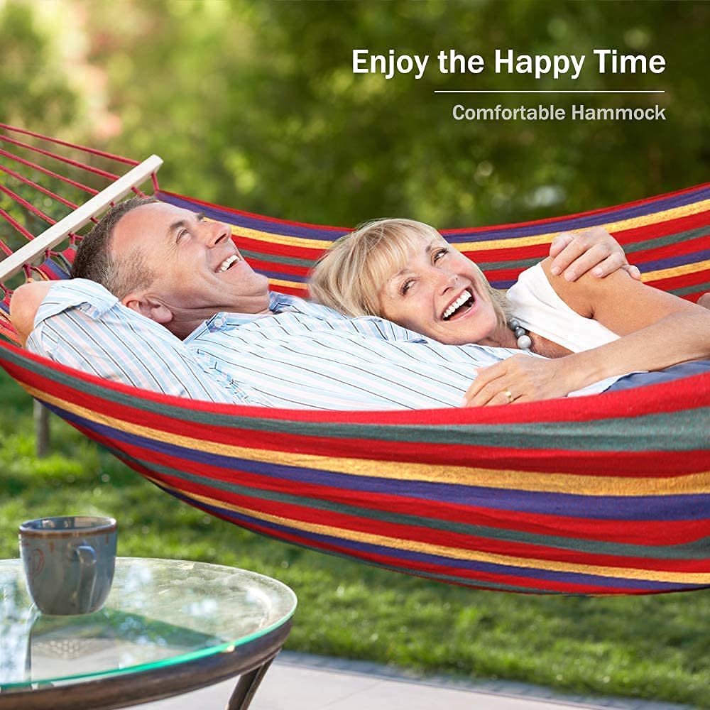 - 【Comfortable and Durable Canvas Fabric】: Newly upgraded thickened 320G environmental protection canvas fabric with no lint, no fading, no odor, no pilling. The hammock is wear-resistant and comfortable, skin-friendly and breathable. High-strength load-bearing is not easy to break. The size is 275*155CM. (It can be folded and used as a pillow.)