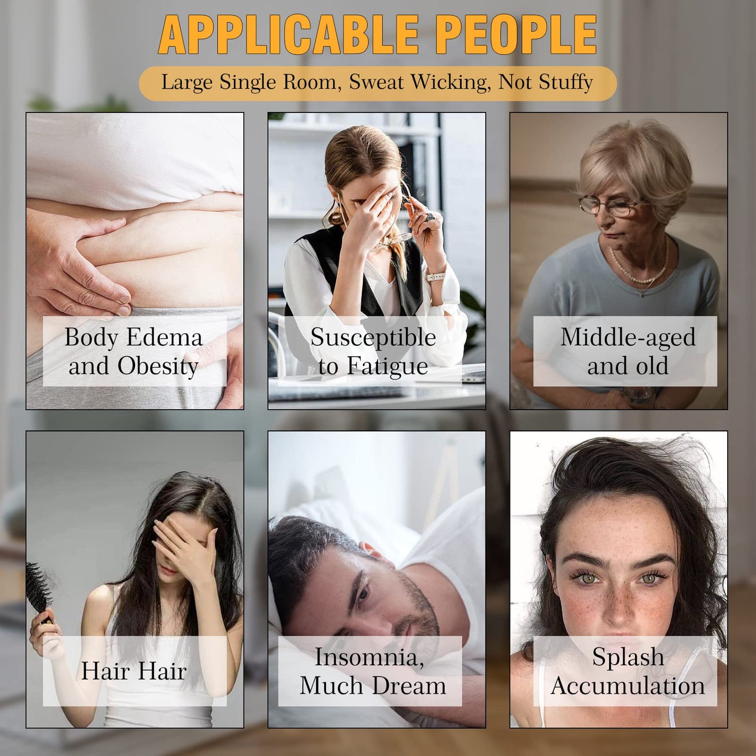 - Benefits from far infrared spa:Lowers blood pressure. Detoxifies and increases blood circulation. Alleviates joint pain, ease pain from sore muscles or aching joints. Besides burning calories, improves skin tone among other benefits. When you are play game on your mobile phone, watch movies, enjoying the book, magazine, TV show, your weight is losing and your body is sharping.It can be adjust during 68°F-140°F.