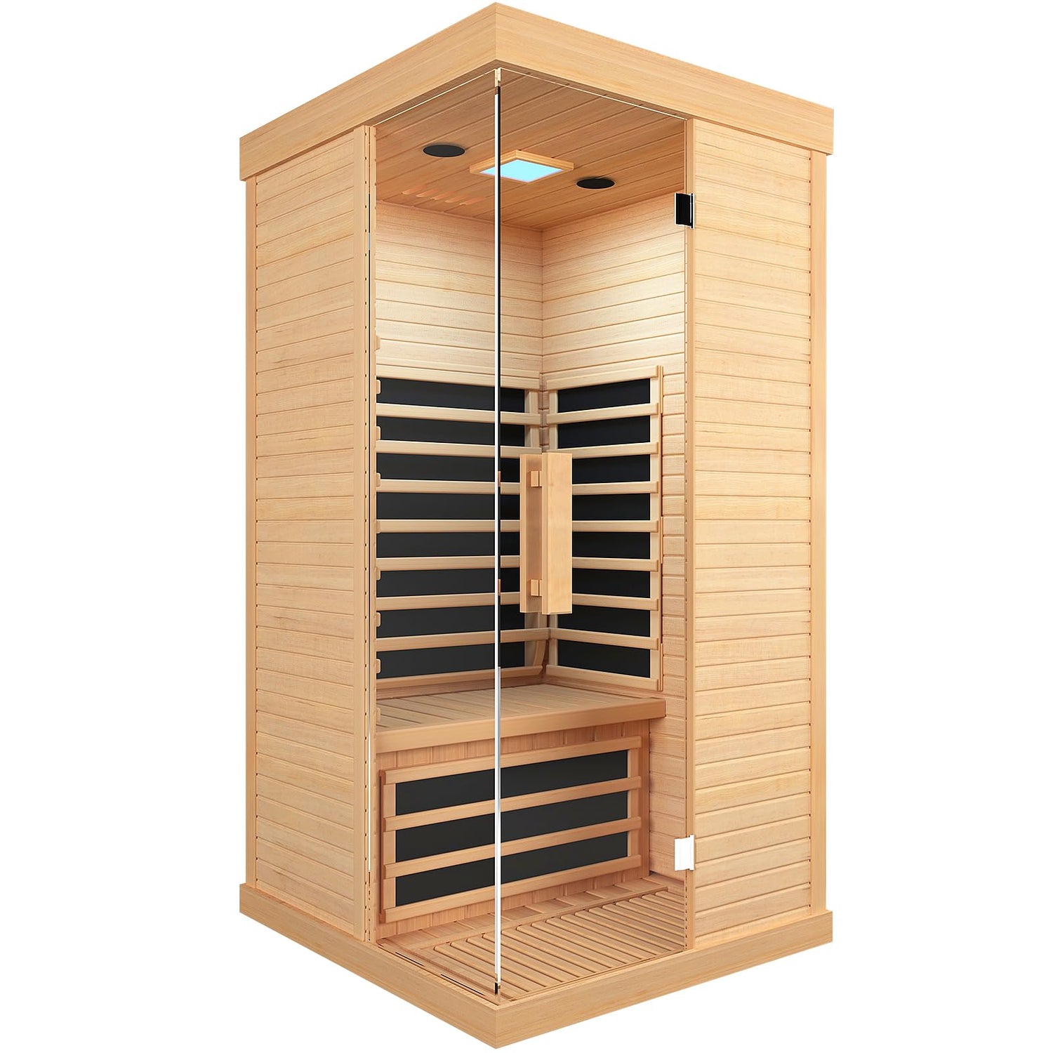 OUTEXER Sauna Room Indoor Far Infrared Saunas Home Canadian Hemlock 1400W Low-EMF Dry Saunas Single Person Spa with 7 Color Therapy 33.5 * 33.5 * 70.9inch