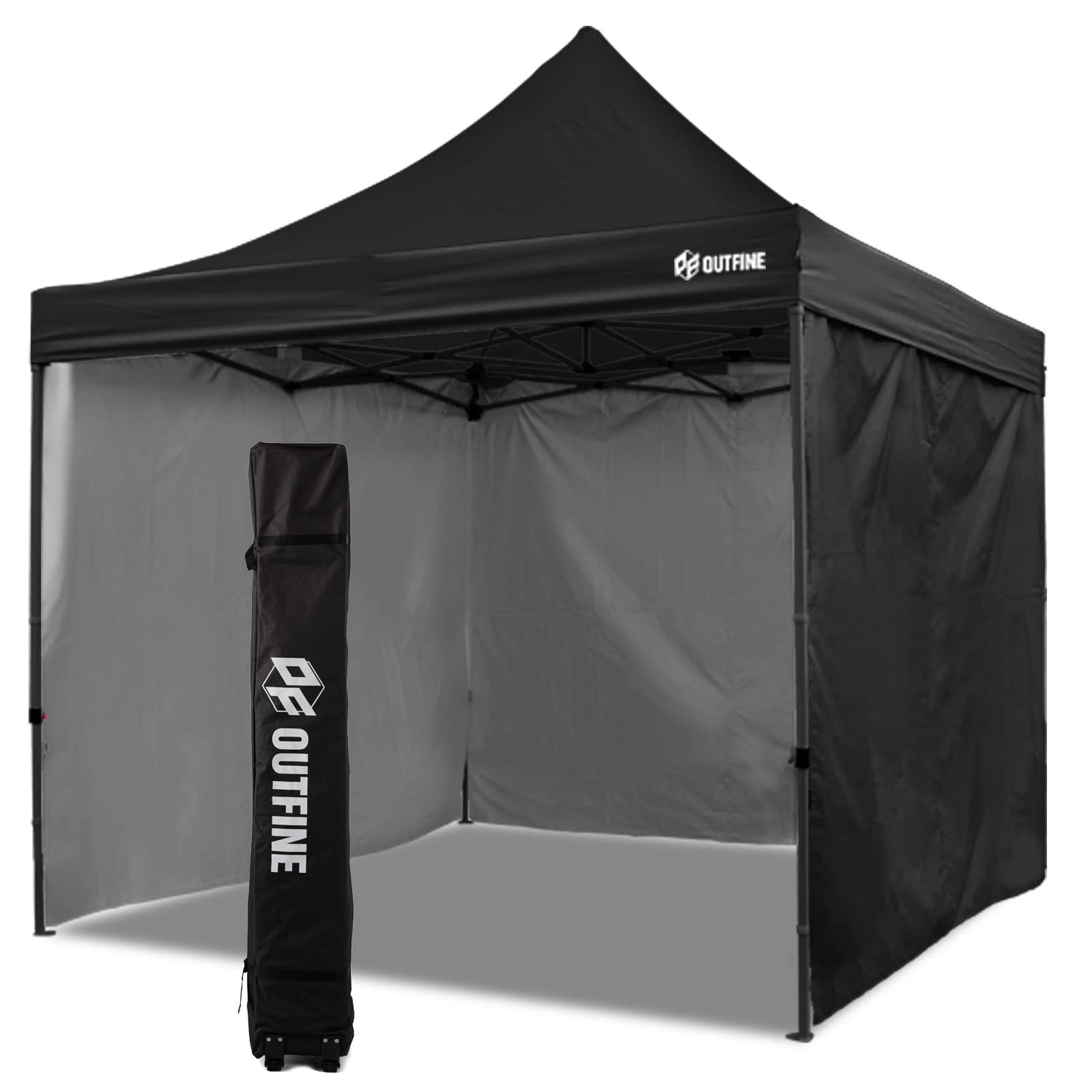 OUTFINE Heavy Duty Canopy 10x10 Pop Up Commercial Canopy Tent with 3 Side Walls Instant Shade, Bonus Upgrade Roller Bag, 4 Weight Bags, Stakes and Ropes (Black, 10 * 10FT)