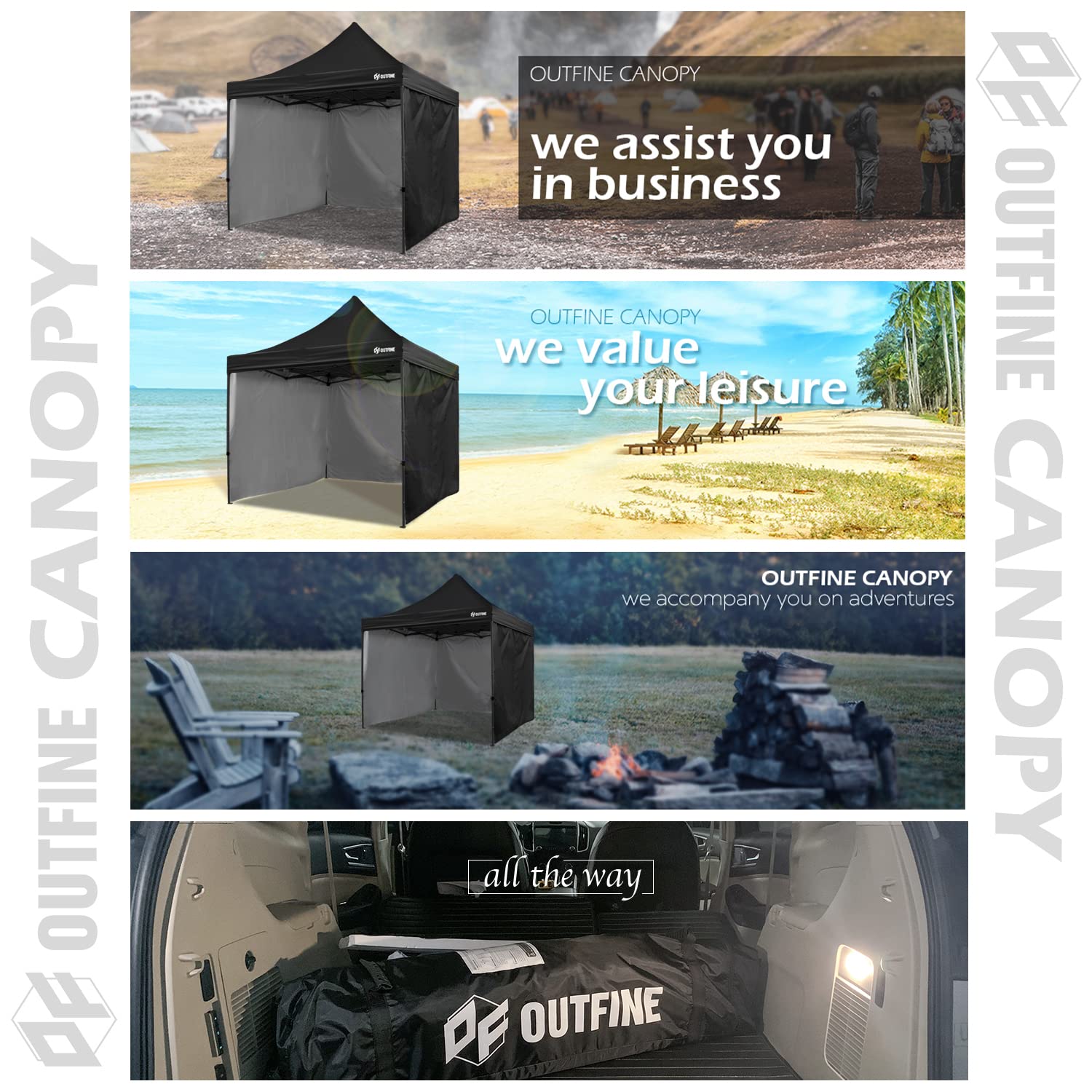 - STURDY MATEL FRAME AND TARPAULIN - Canopy metal legs are of 30x30mm, special designed metal top bracket bringing commercial-grade solid experience. Special thicken metal frame with anti-rust coating. The cross-truss structure technology makes the canopy strong enough to withstand wind. The canopy tarpaulin is made of 300D high density Oxford polyester fiber, with a special silver-plated PU lining, 100% waterproof, UPF 50+, it can block 99% of harmful rays of sunlight.