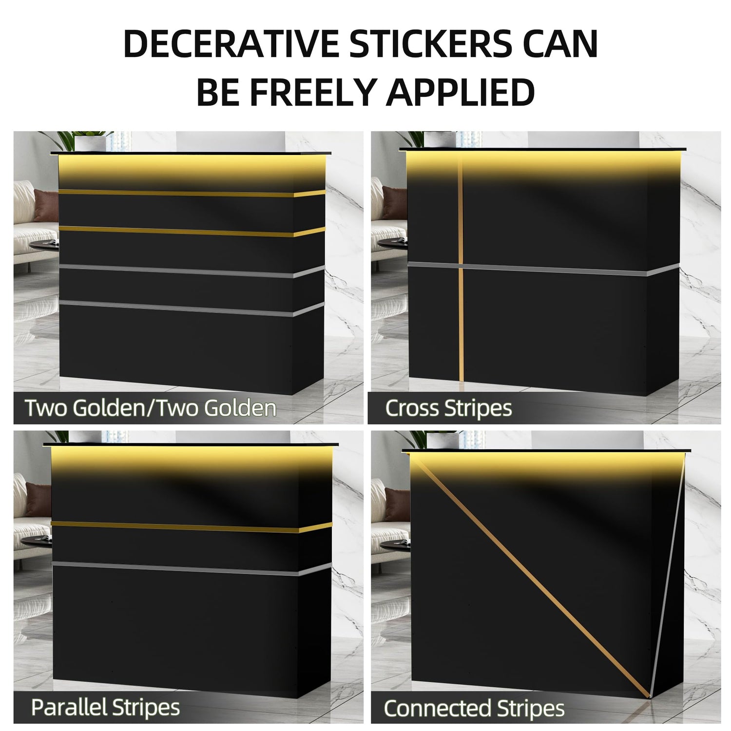 - 【Customizable DIY Design】: Comes with LED light strips and two-color metallic decals, enabling you to freely mix and decorate the desk for a striking look. The sleek, minimalist design paired with remote-controllable, color-changing LED light strips creates a welcoming ambiance, ensuring your reception area grabs customers' attention