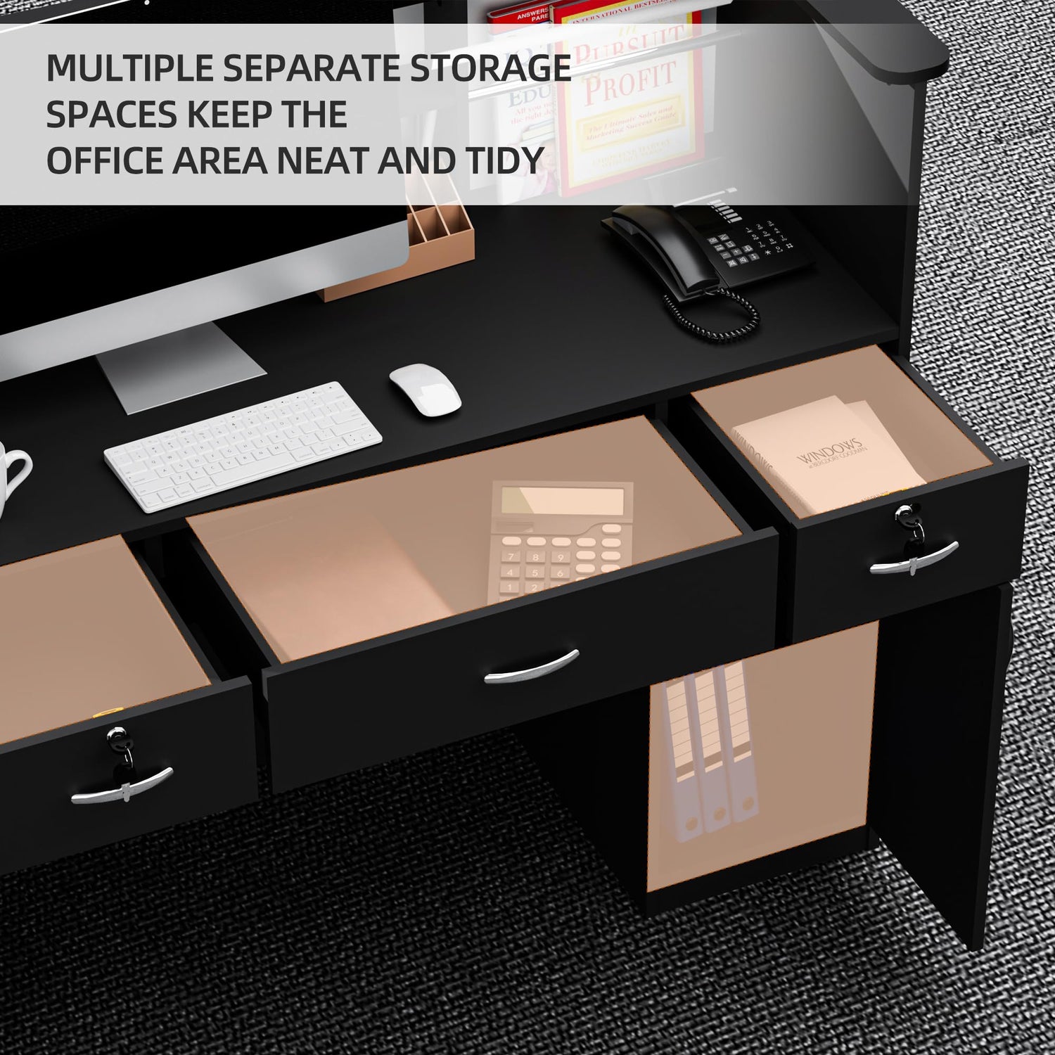 - 【Enhanced Privacy & Security】: Equipped with two lockable drawers and high side panels, this Checkout Counter offers superior privacy and security. It provides a safe space to store important documents like account books in your office. The spacious desktop and well-organized storage make it effortless to keep personal items in order