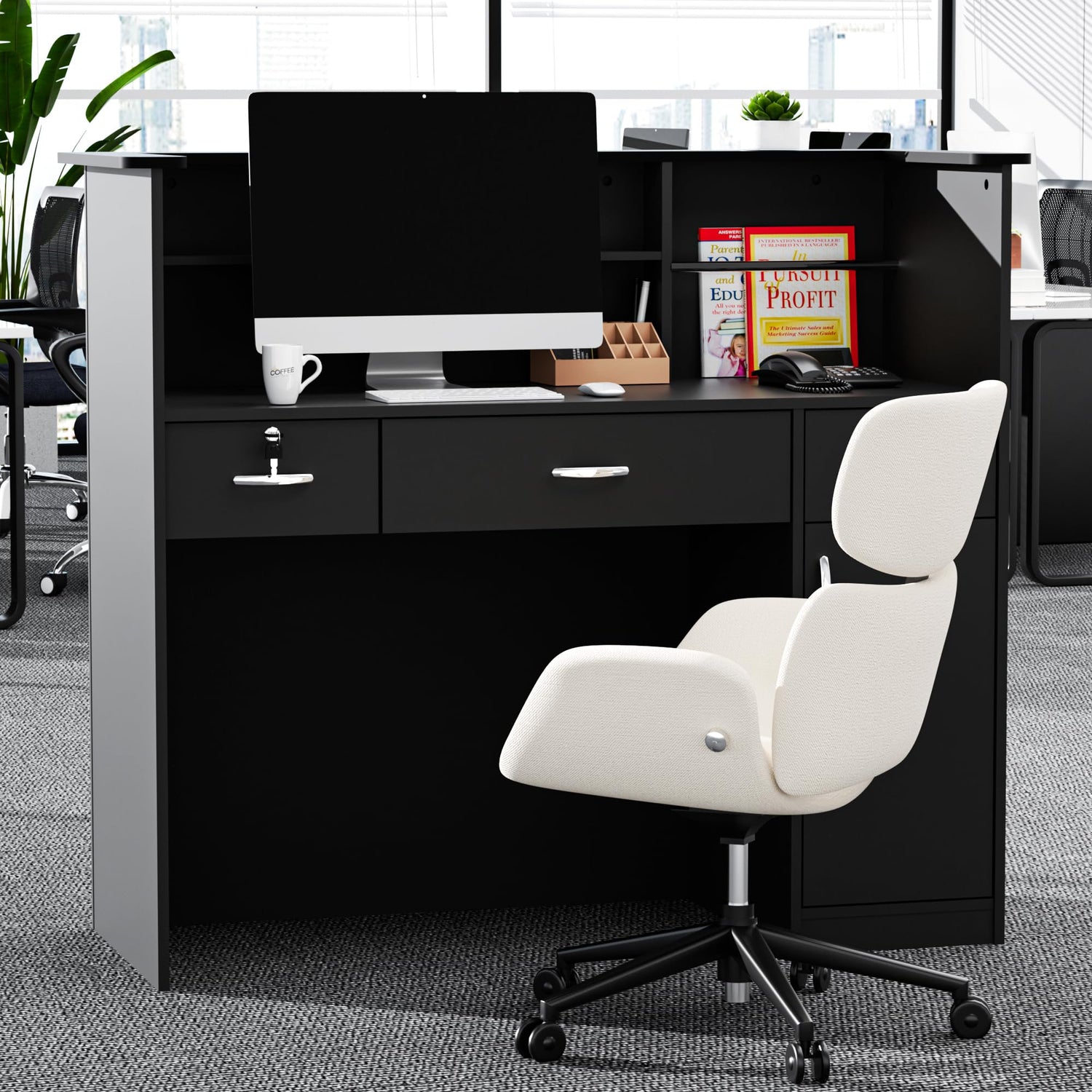 - 【Adaptable and Multi-Utility】Designed with versatility in mind, this reception desk is suitable for a wide range of settings. It can serve as a front desk in a professional office, a checkout counter in a retail store, or a welcome station in a salon. Adapt it to your specific needs and make it an essential part of your business space
