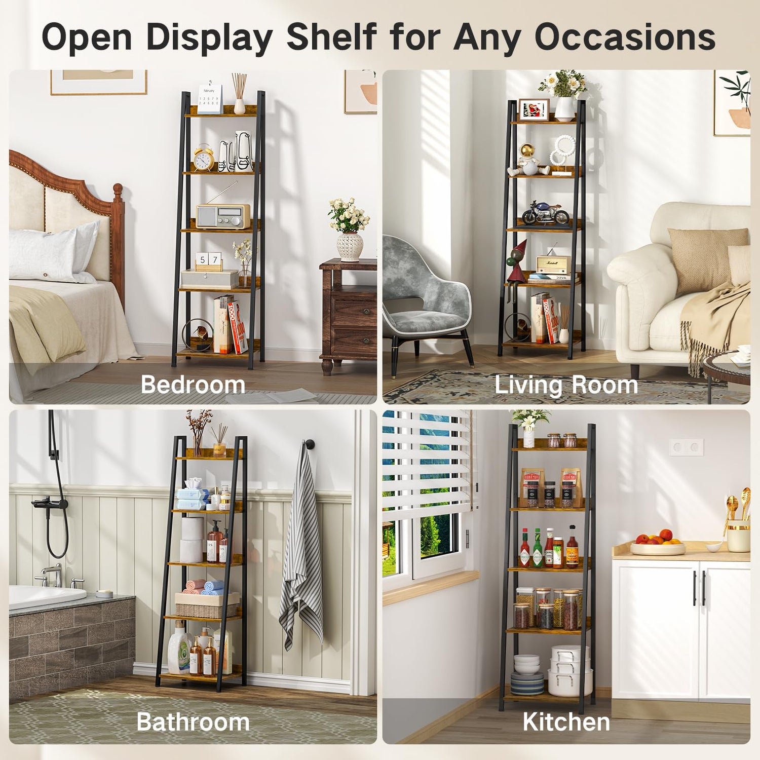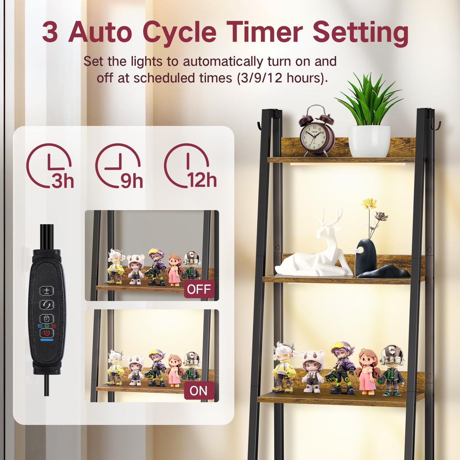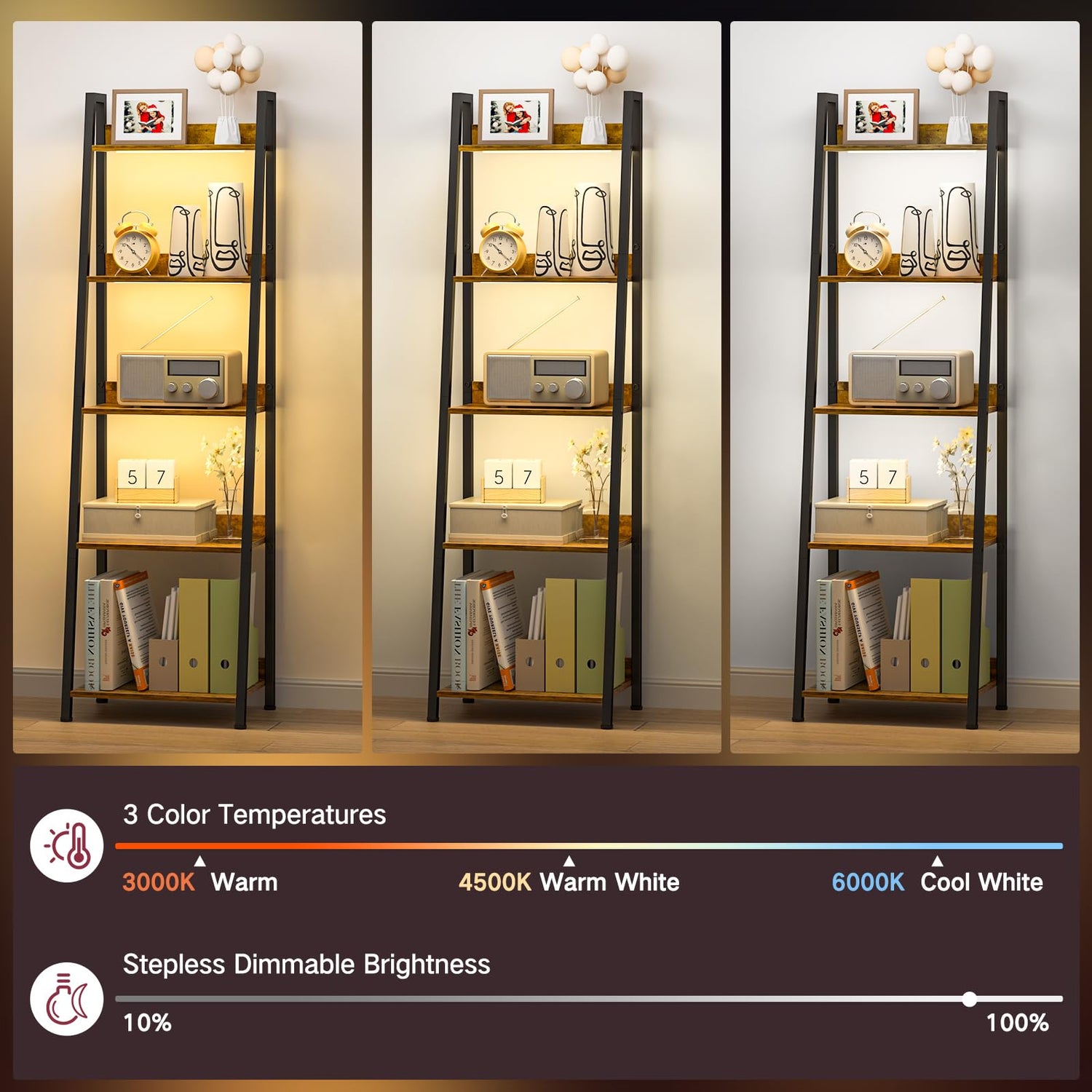 - Modern Ladder Bookshelf with LED Lights: Illuminate your space with built-in 3 LED lights. Our 5-tier ladder shelf includes 3 head LED lights with Warm/Cool White/Daylight (3000K-6000K) options, offering 10 level brightness settings. You can set the ideal brightness to match your mood or the time of day. The lights can be mounted on any tier to decorate your decor, books, or plants, making it ideal for creating cozy corners or showcasing your favorite pieces.