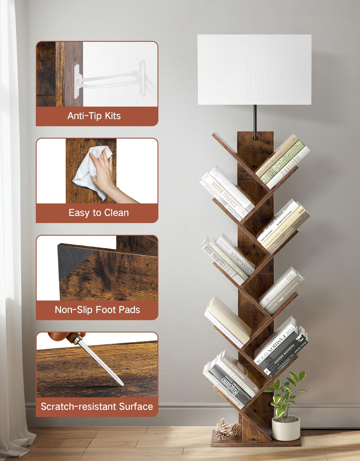 - 9-Tier Tree Bookshelf – Artistic Design Meets Practical Storage: Inspired by the shape of a flourishing tree, this 9-tier vertical corner bookshelf adds a unique decorative touch to any room. Its sculptural form doesn't just look good—it’s built to hold 40–50 heavy books of various sizes while taking up minimal space. Great for displaying not only books, but also plants, photos, and collectibles.