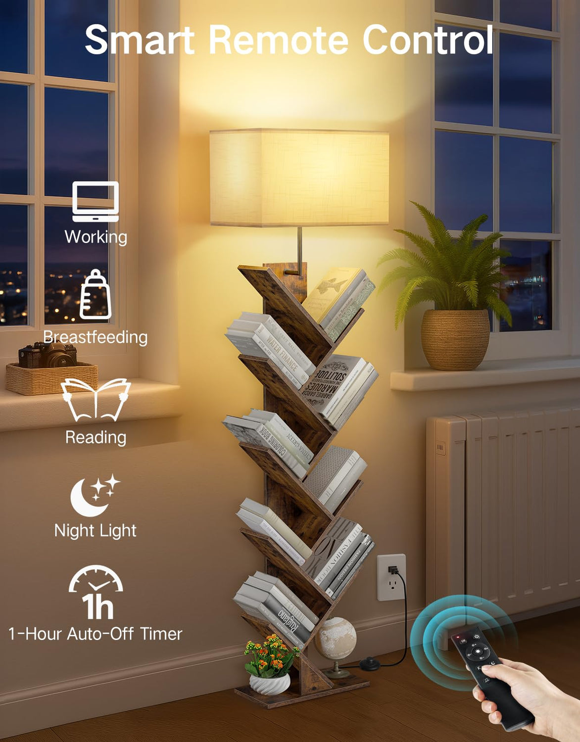 - Effortlessly Control Your Lamp with the Remote Control (Not Included AAA Batteries) and Foot Switch: Adjust lighting modes, brightness, or set the 1-hour timer without bending down. The memory function remembers your last settings, so you don’t have to adjust the book shelf lamp every time. The 1-hour timer ensures auto shut-off, making it perfect for winding down before bed or for a convenient “set-it-and-forget-it” experience.