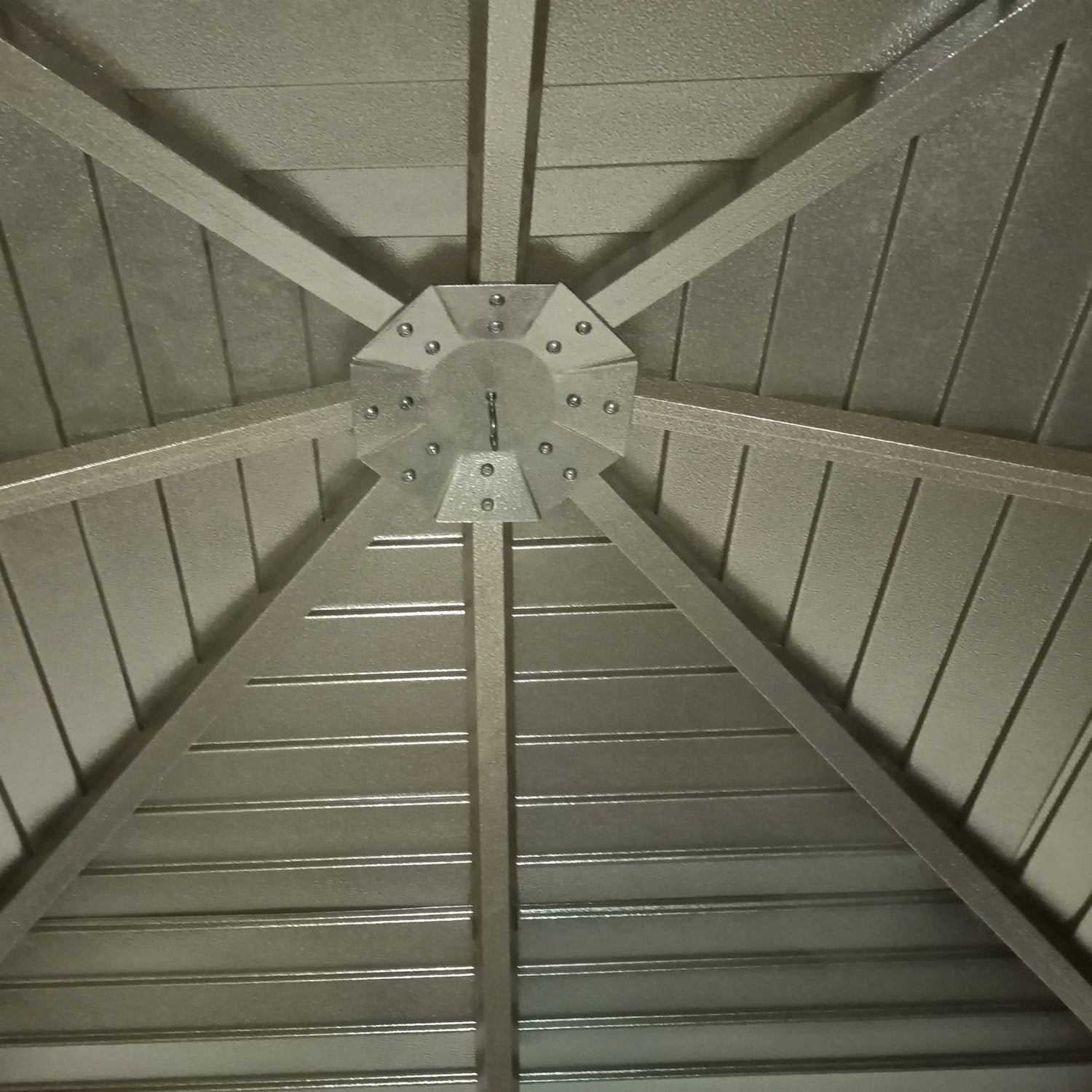 - Metal Hardtop Protection: Our gazebo's heavy-duty galvanized steel slat roof provides you and your patio furniture with needed shelter from damaging UV radiation and rain. Relax, we have you covered.